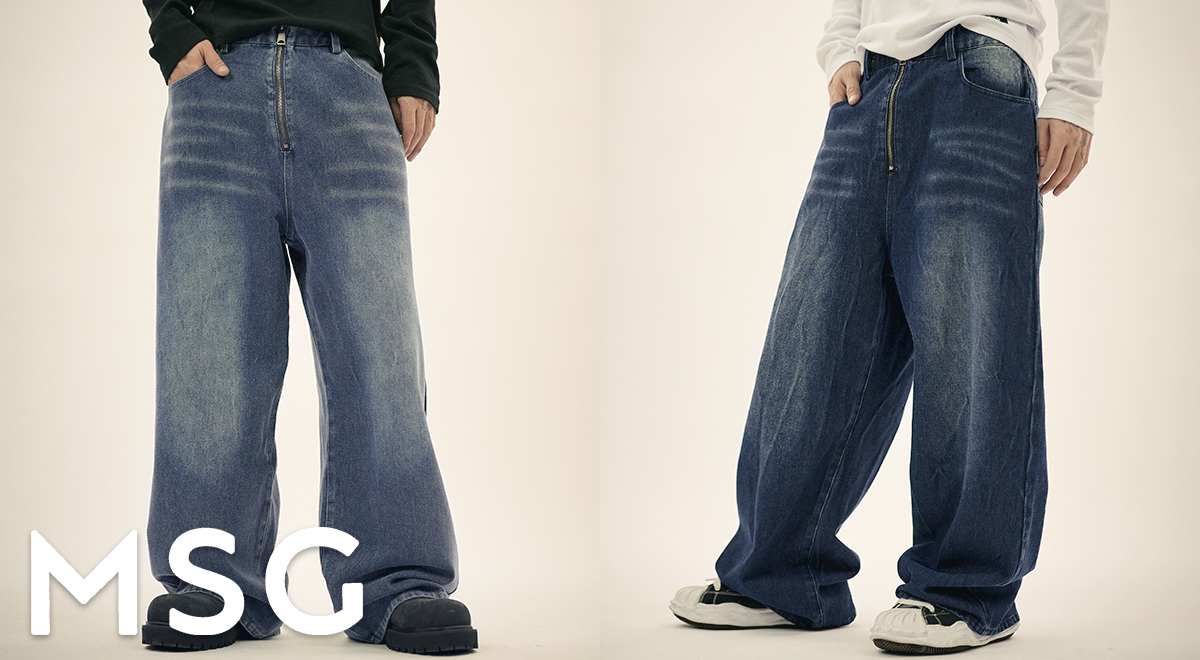 センタージップワイドバギーデニムパンツ
