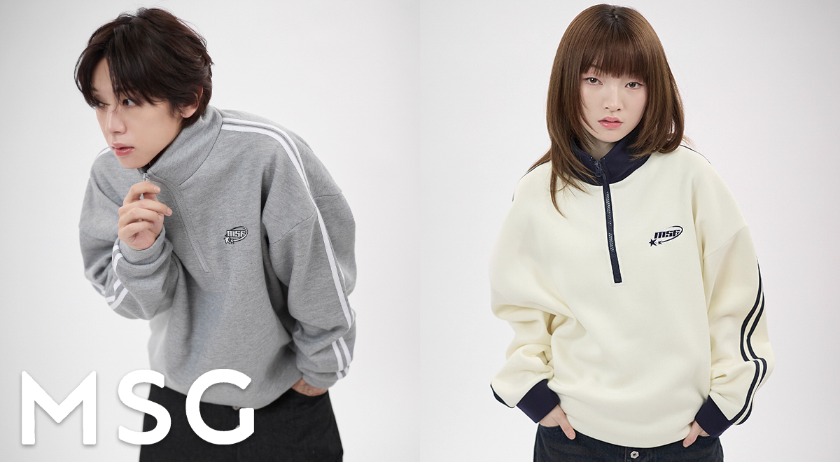 オーバーサイズサイドラインハーフジップ スウェット プルオーバー 配色 ブランドロゴ ワンポイント刺繍