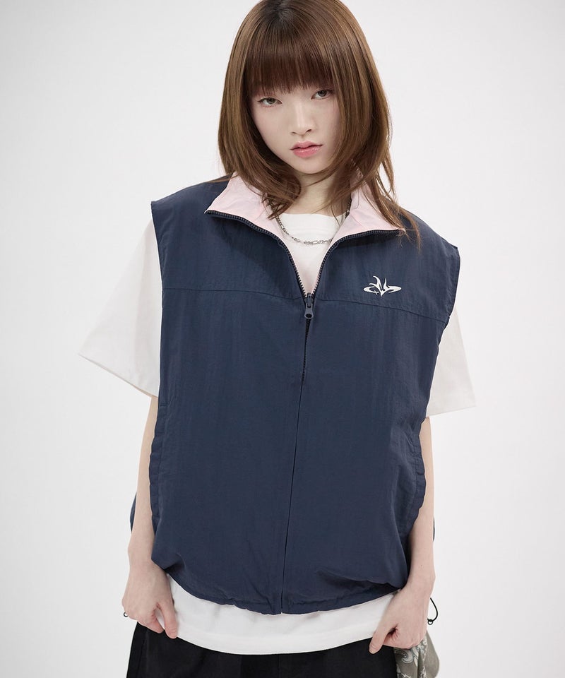 ナイロン リバーシブルドローコードスタンドネックベスト