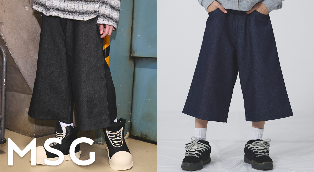 ヴィンテージ加工 ワイドデニムハーフパンツ