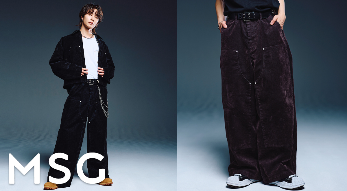 【SET-UP着用可能】ベルベットライクペインターダブルニーデニムパンツ