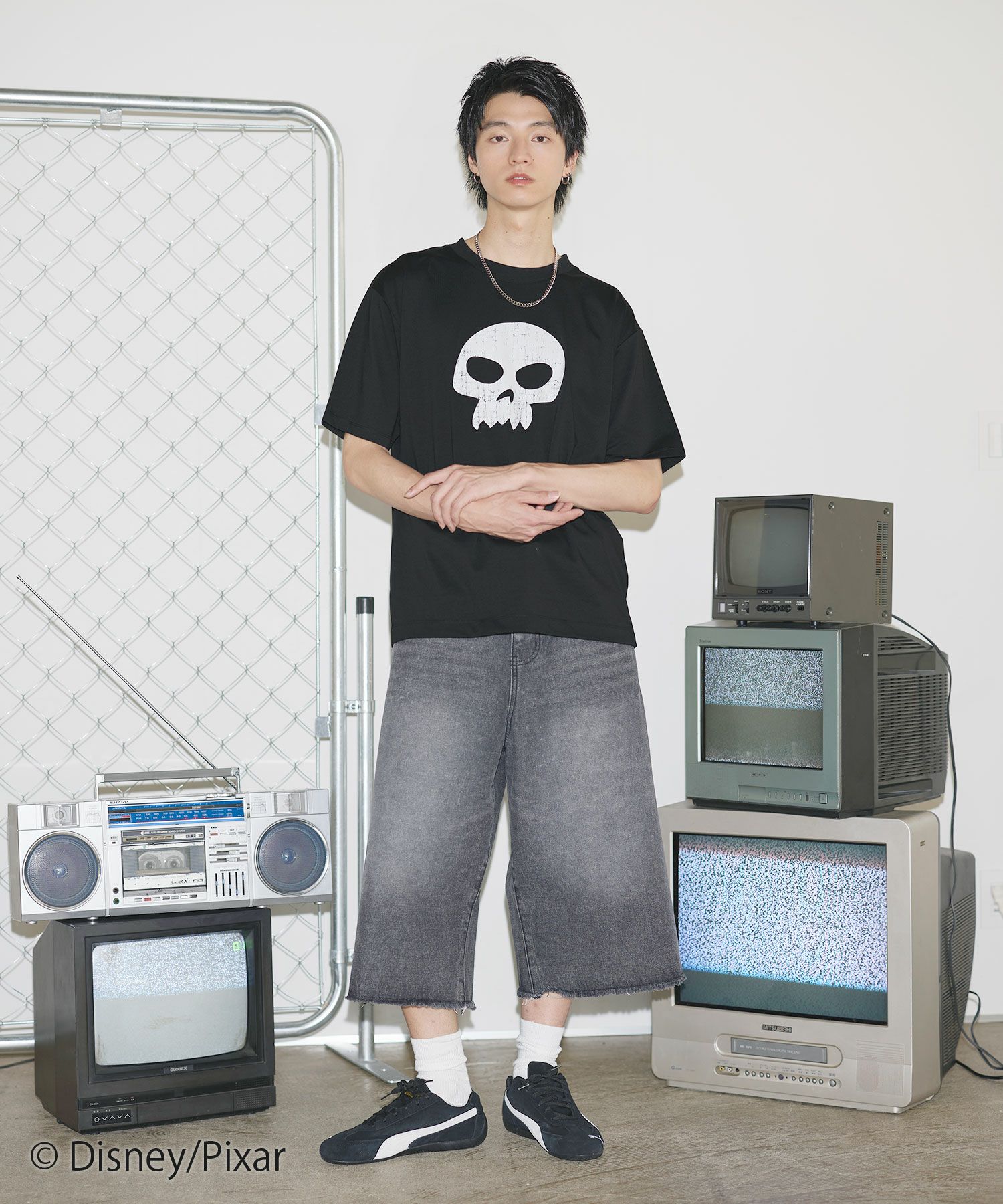 ・キャラクターの存在感が引き立つ主役級のTシャツは、シンプルなボトムスと合わせるだけでこなれた印象に。