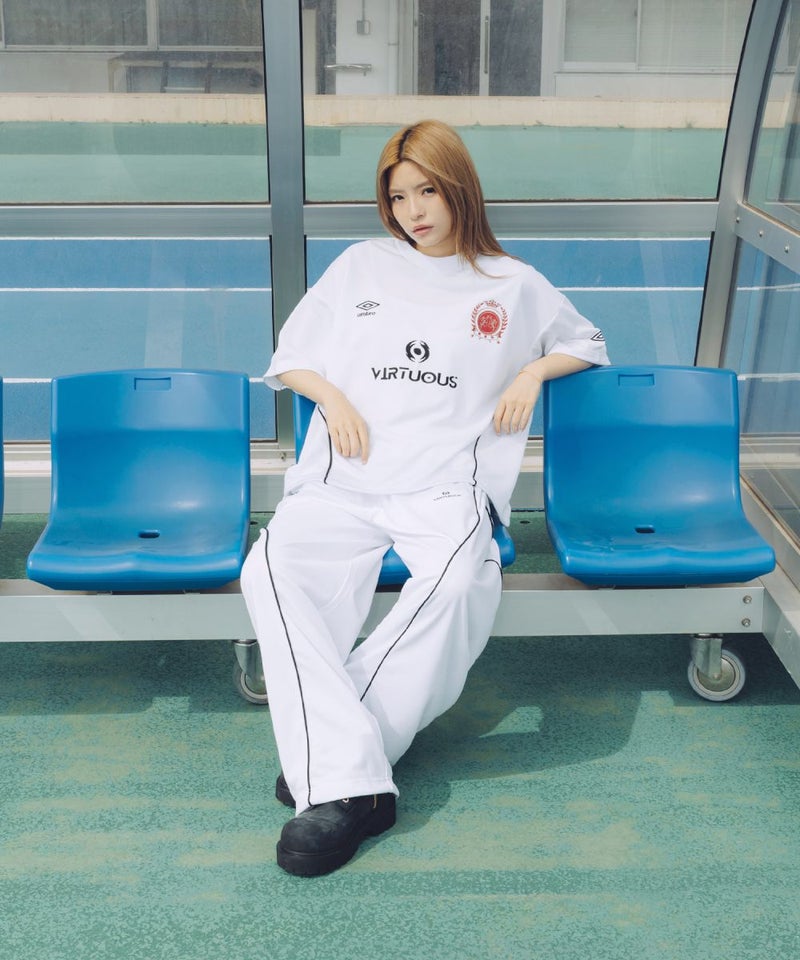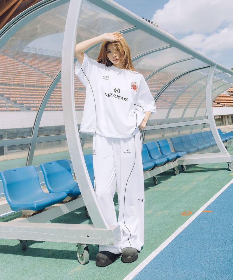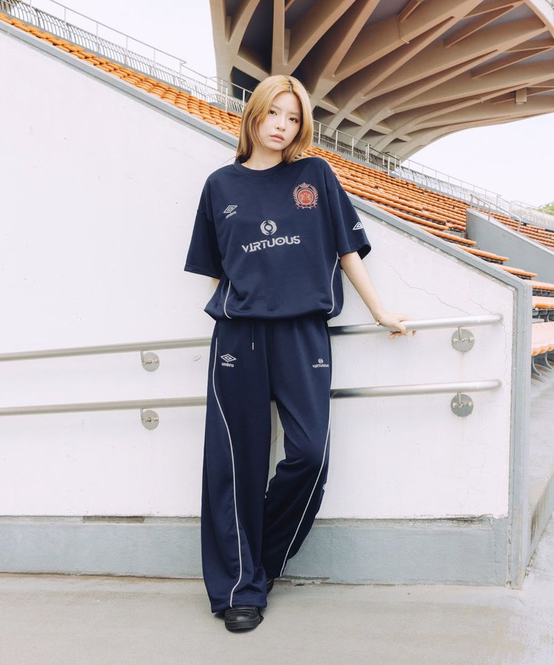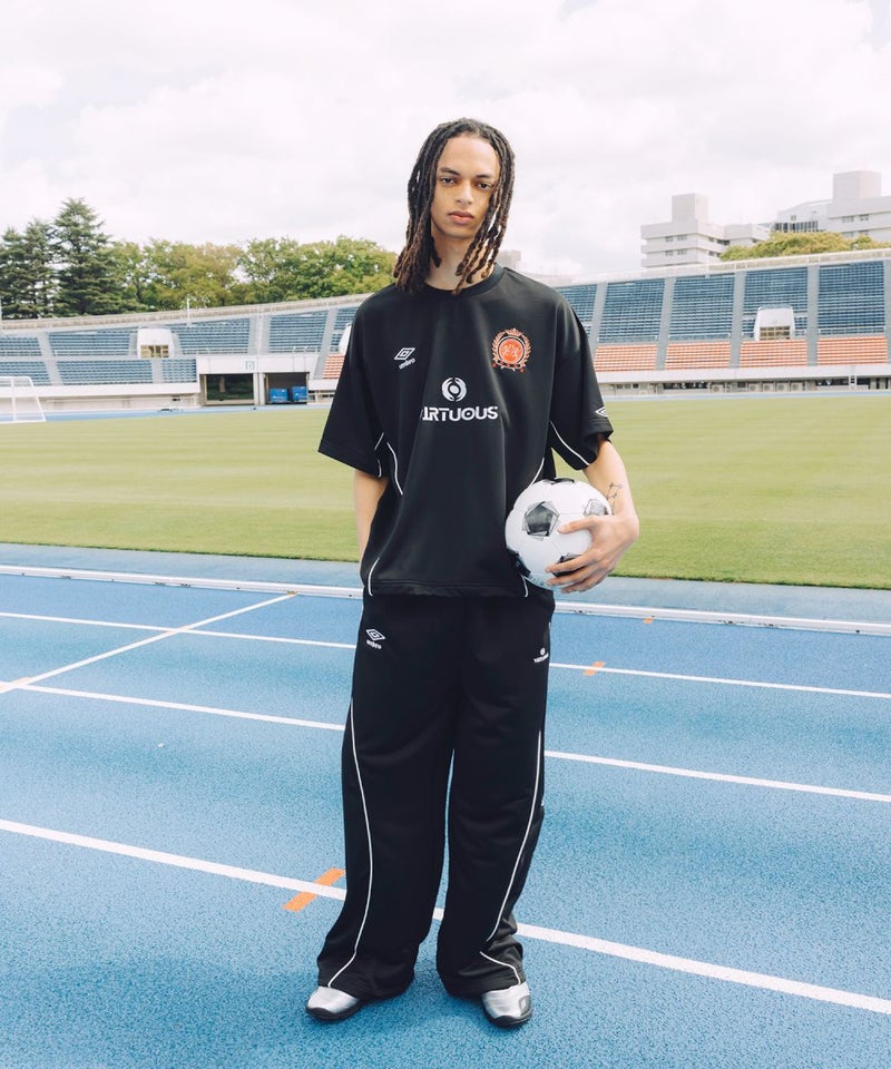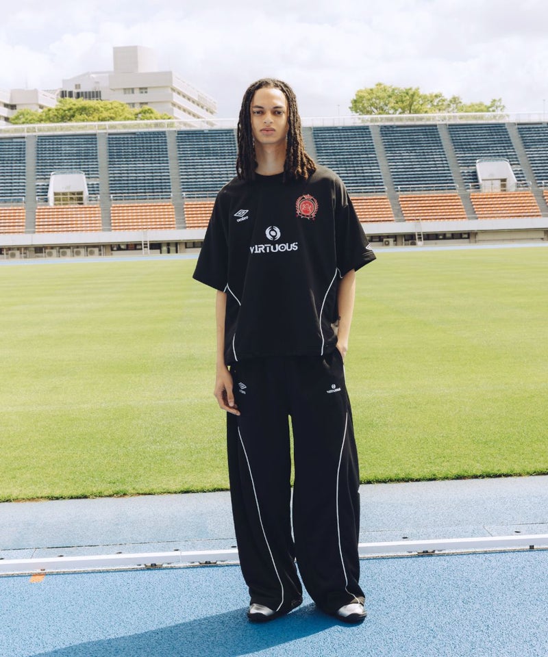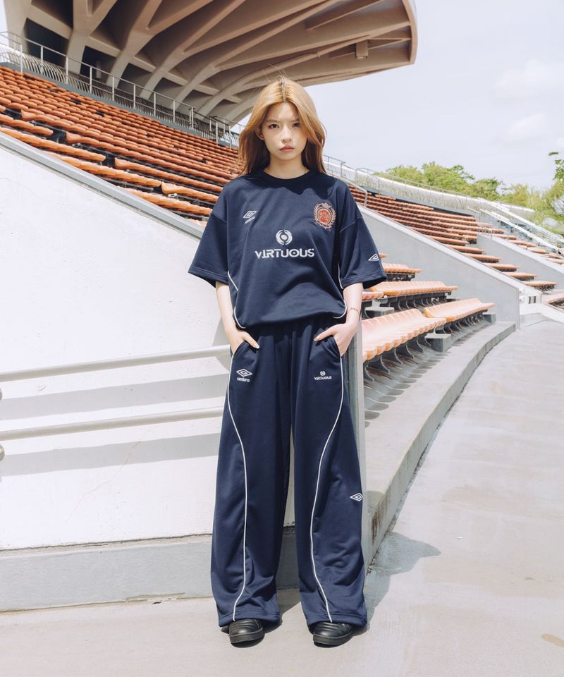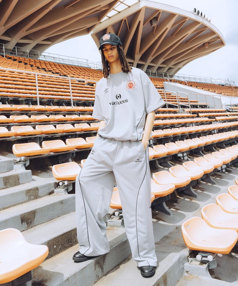 フットボールウェアの要素を取り入れた、「UMBRO」別注のオーバーサイズスウェットパンツ。サイドのパイピングデザインが、スポーティな印象を引き立てる一本です。