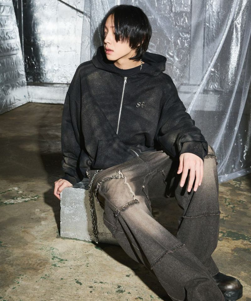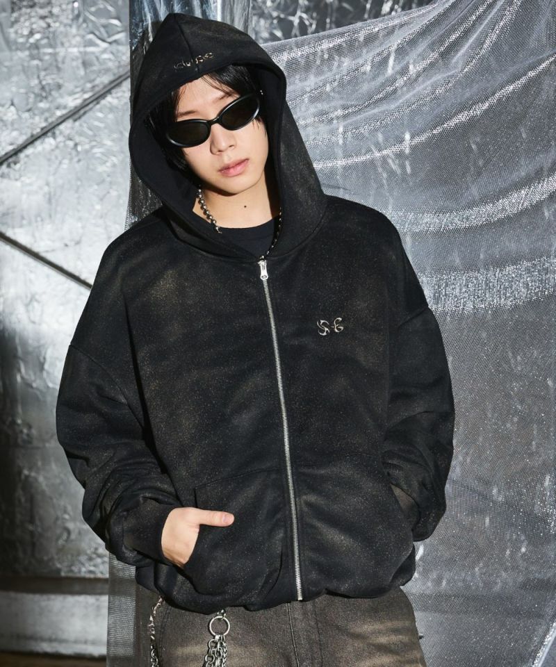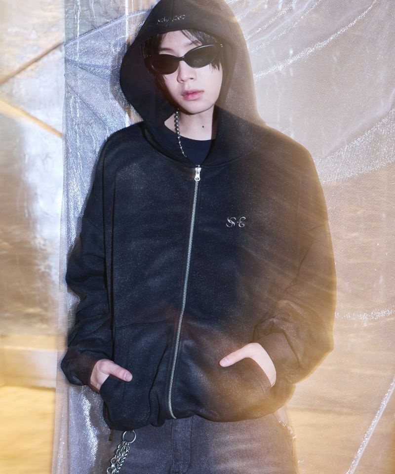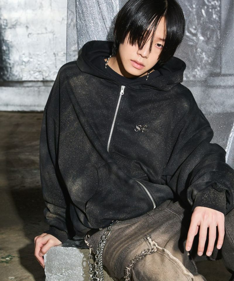 ゆったりとしたシルエットのダブルジップパーカー。フードのフロントと左胸にブランドロゴが刺繍されているのが、アクセントに。羽織りとして着用するのはもちろん、ダブルジップならではのインナーとのレイヤードをお楽しみいただけるアイテムになっております。アーバンな雰囲気を残しつつ、ブリーチ加工を施したブラックとホワイトの2色展開。また、生地は厚すぎず薄すぎず、ロングシーズンにわたって快適に着用いただけます。ユニセックスで着用可能です。