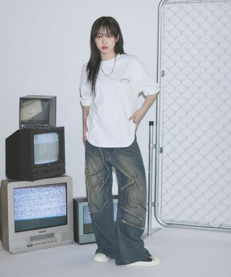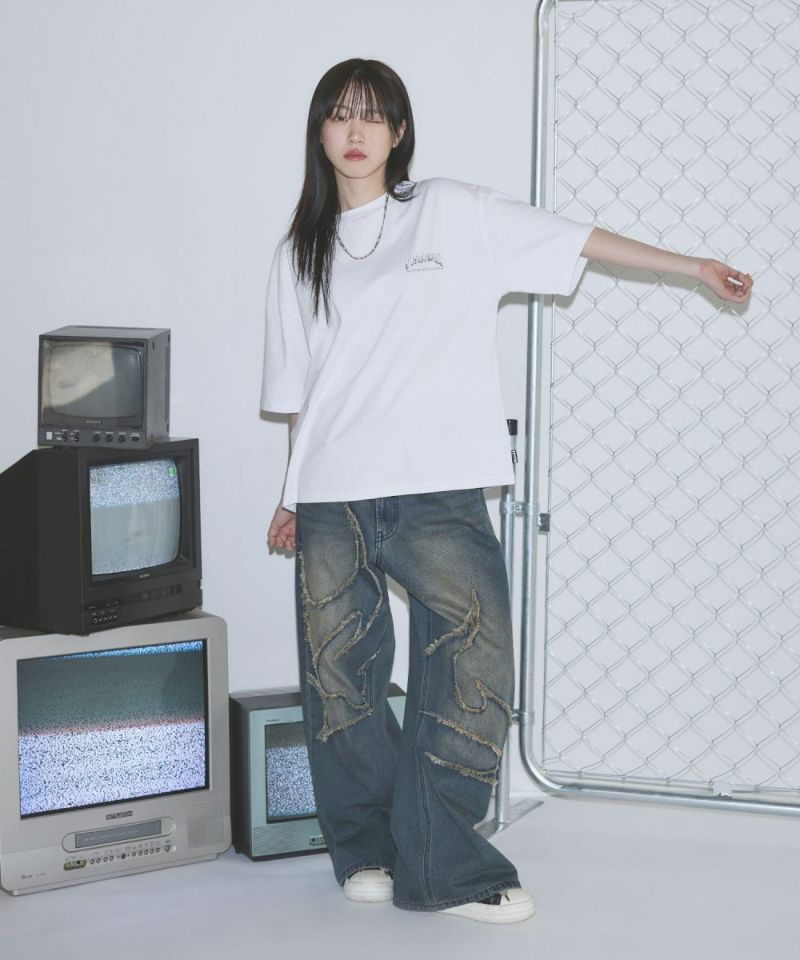 ・トレンド感のあるボックスシルエットに、ヴィンテージライクな加工プリントを施した一枚は、シンプルながらも抜群の存在感を放ちます。