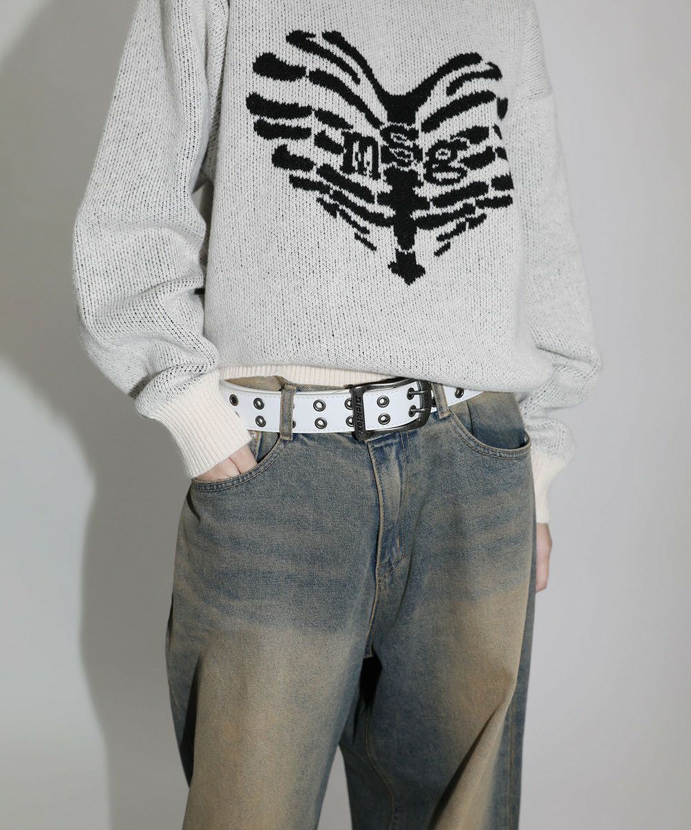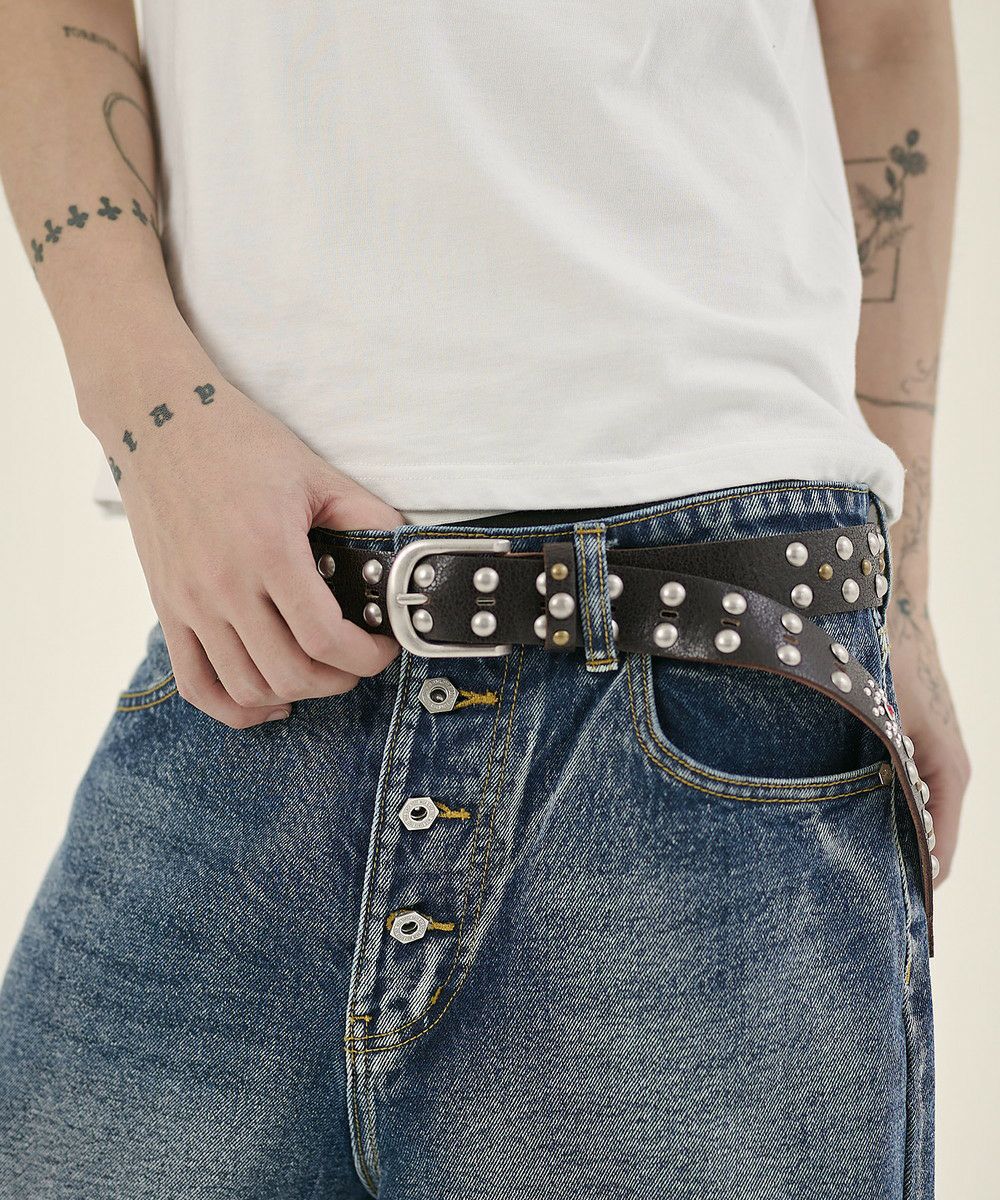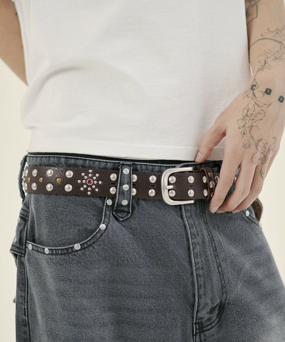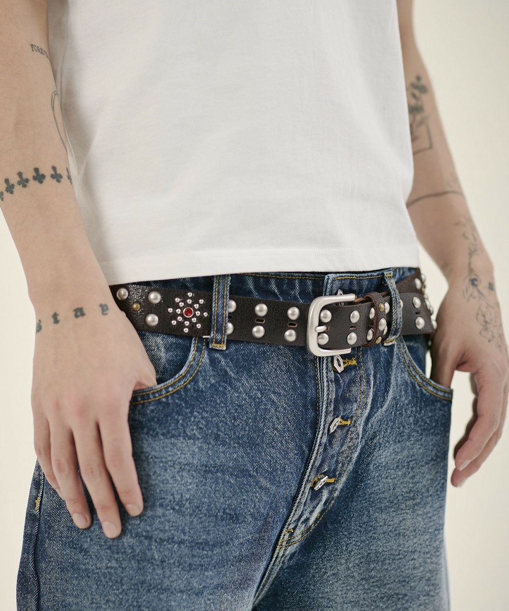 カウレザークラックフラワースタッズベルト