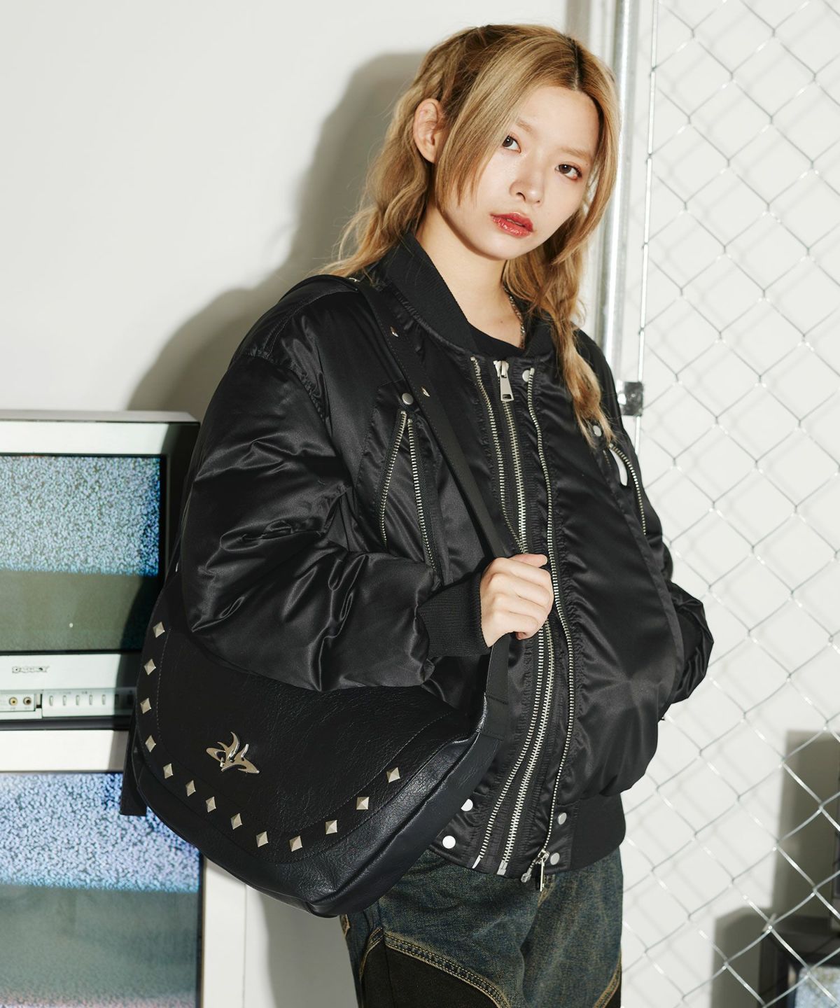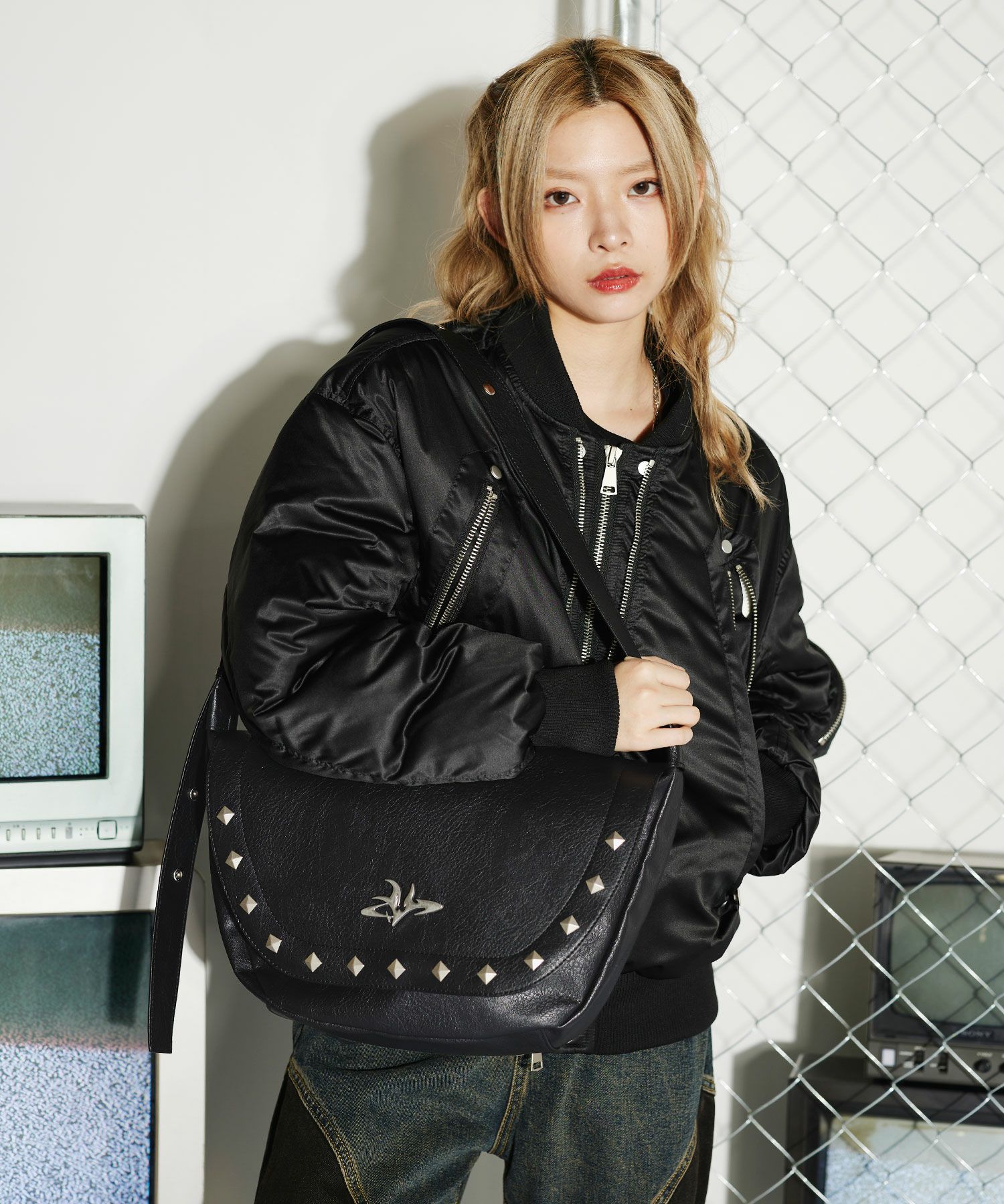 合皮メタルロゴショルダーバッグ