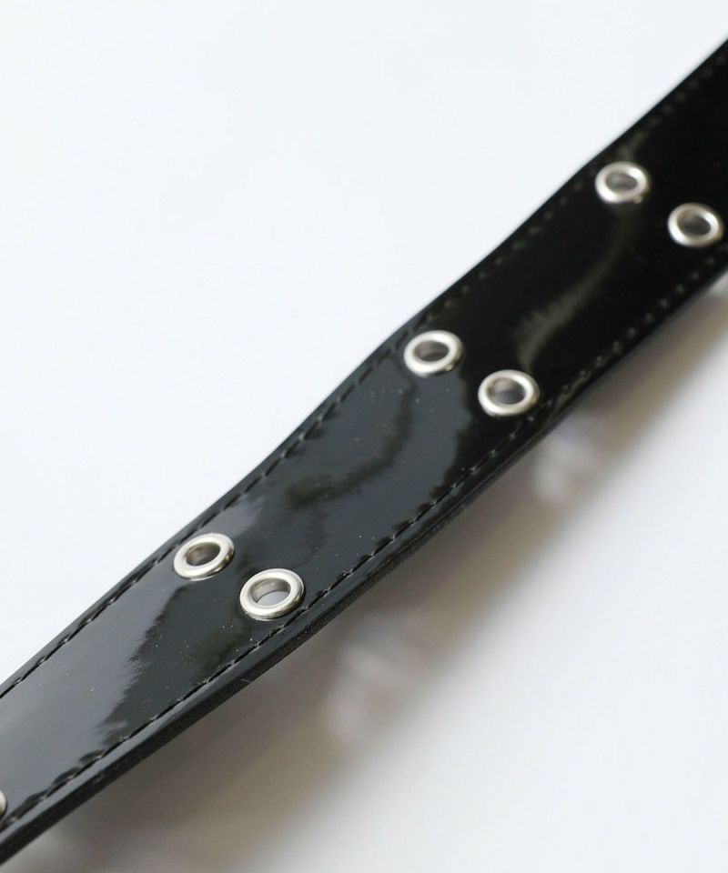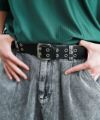 ダブルピンが存在感たっぷりな幅広のアイレットベルト。全面に配したアイレットで後ろ姿も抜かりなし。