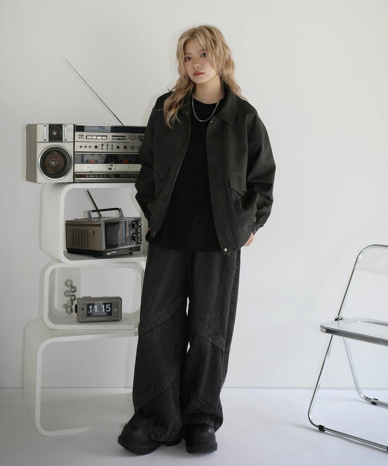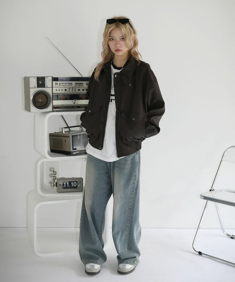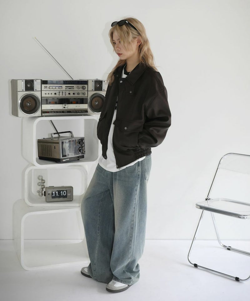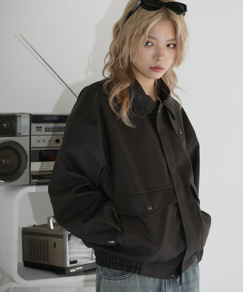 米陸軍航空隊のシンボルであるフライトジャケット、A-2をトレンドに落とし込んだ1着。合成皮革の質感にこだわり、本革のようなシボ感とマットな質感が魅力です。