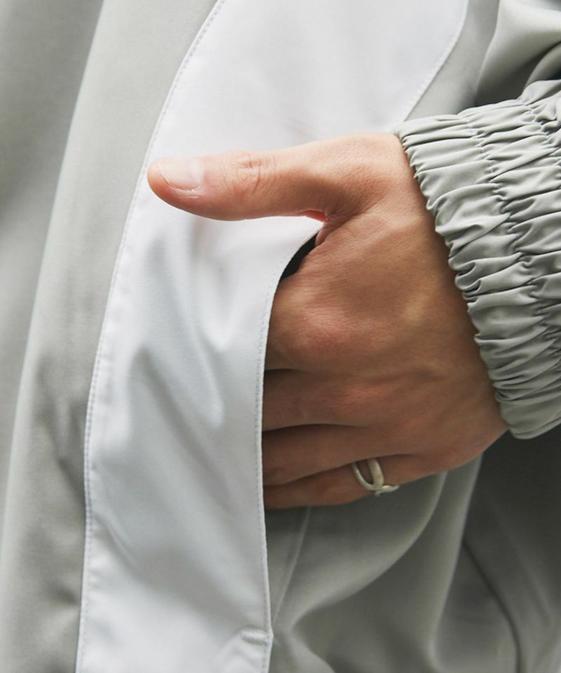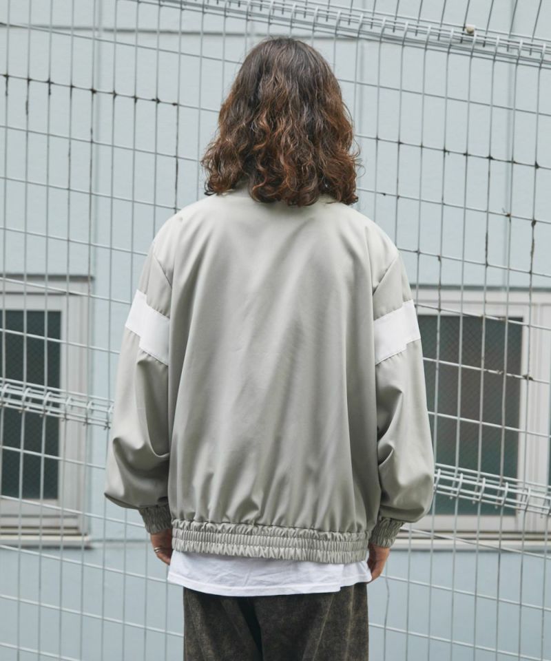 スポーティーな雰囲気のレーシングジャケット。肩の縦ライン部分が切り替えデザインが入ったジャケット。ドルマンスリーブで、袖と裾にはリブが施されているため、きれいなバルーンシルエットを再現。左胸にはオリジナルのブランドロゴを配しております。ジップを上まで閉めてハイネックの着こなしもおすすめ。女性にもおすすめなユニセックスアイテムです。