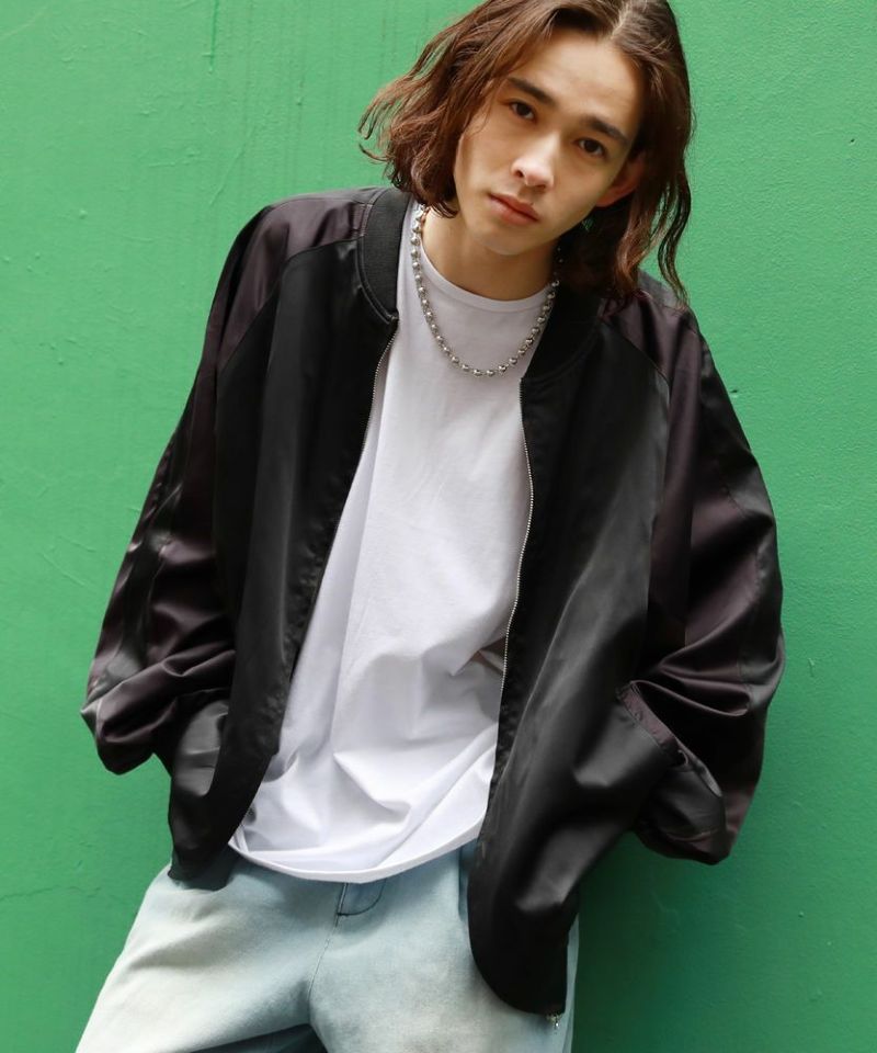 ヴィンテージライクな着こなしに欠かせないスカジャン。刺繍のないミニマルなデザインにすることで、幅広いコーディネートに対応できる着回し力の高い一着。配色のバランスにもこだわり、着こなしに取り入れるだけで抜け感のあるスタイルに。光沢感と落ち感のあるポリエステルサテン生地を使用し、とろみのあるドレープ感を表現。程よい緩さがリラックス感のある今の気分にマッチするアイテムに仕上がっています。薄手で軽やかな着心地のスカジャンは一つあると春先や秋口のライトアウターとして活躍。男女問わずにユニセックスでお使いいただけます。