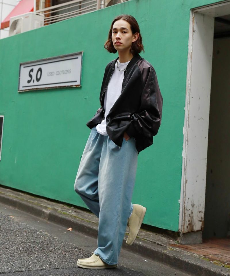 デニムパンツやカーゴパンツなど太めボトムと合わせたストリートライクな着こなしがおすすめ。ゆとりのあるデザインなので、インナーにはルーズなカットソーやスプリングニットなども着込むことができ、インナー次第でロングシーズン着回しが可能です。