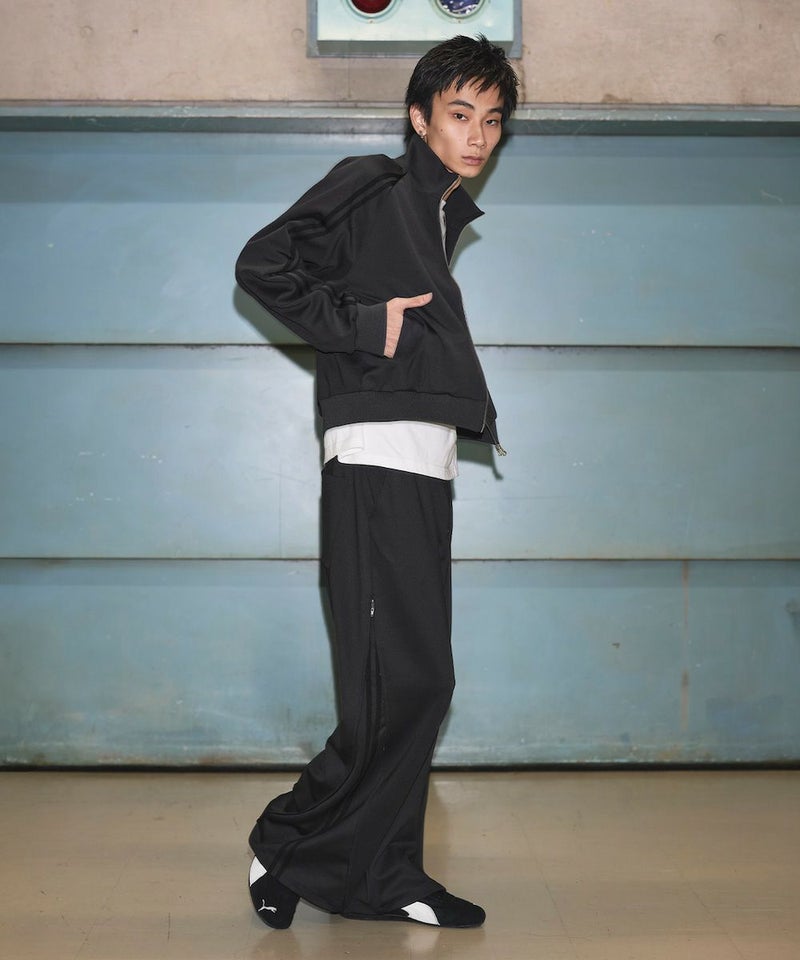・モードに寄せたいときはスラックスやモノトーンアイテムと組み合わせて、都会的なストリートMIXを楽しむのもおすすめ。