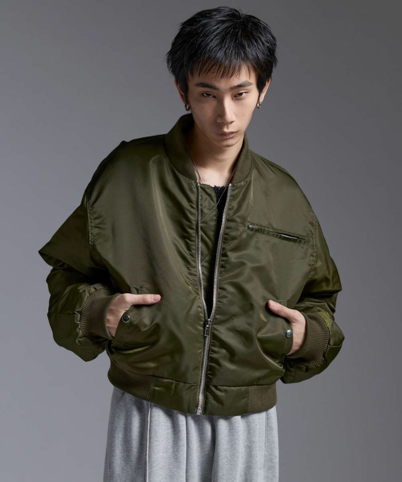 ・ナイロンと合成皮革の2種類の素材から選べるMA-1ジャケット。