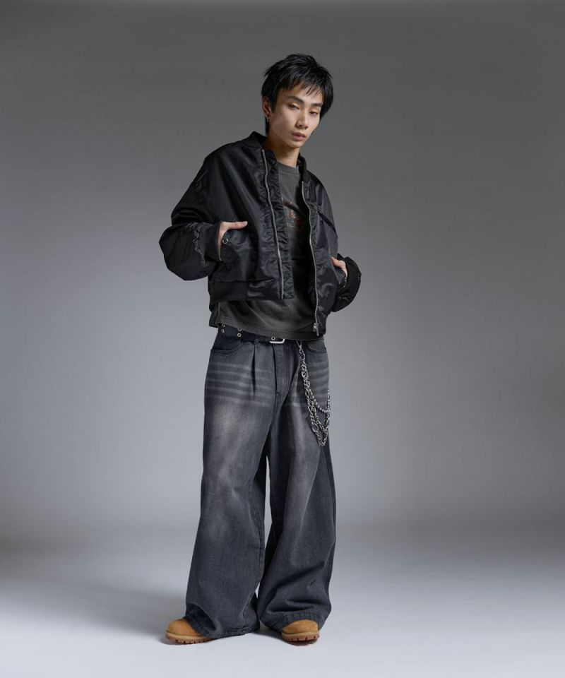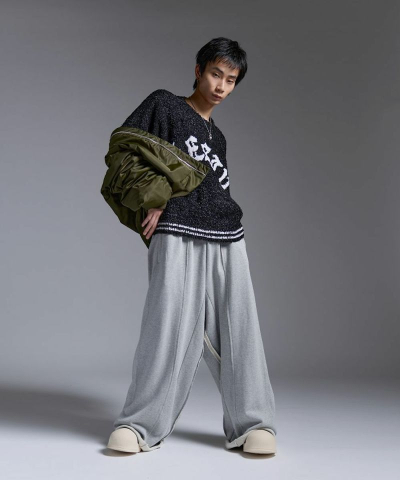 ・ボトムにはワイドめのデニムやスウェットパンツを合わせると今っぽいスタイリングが完成します。