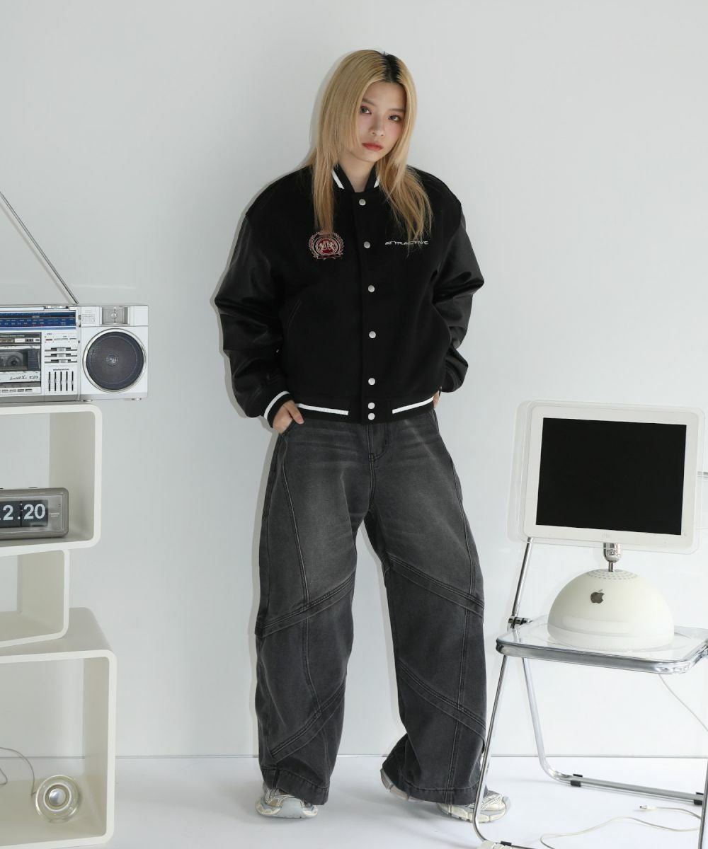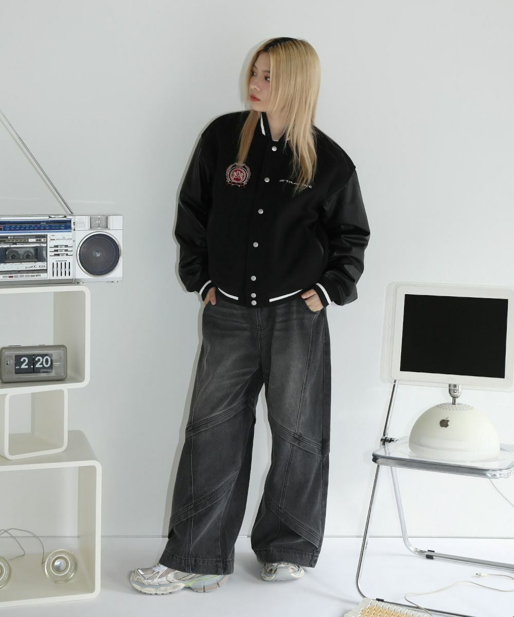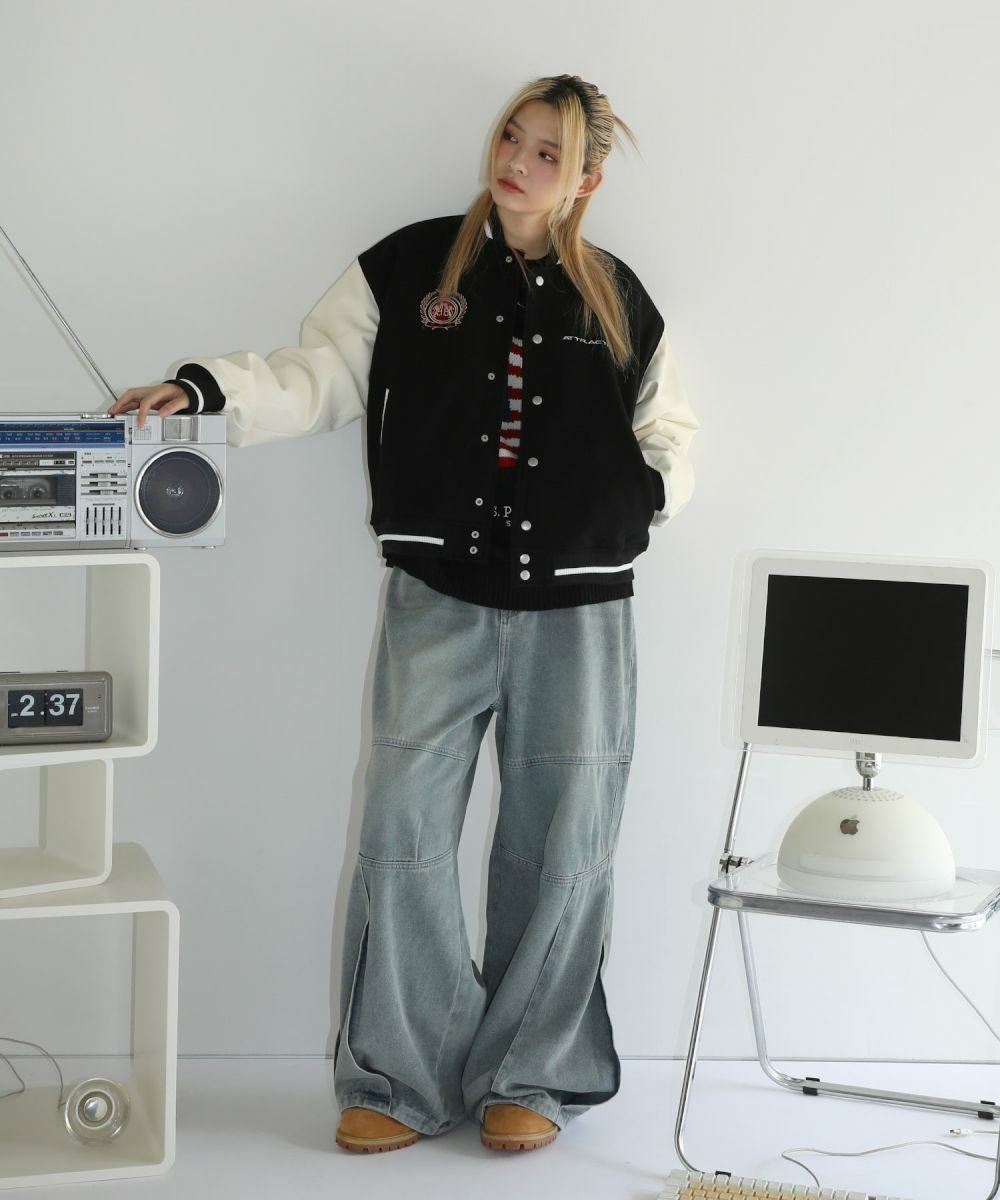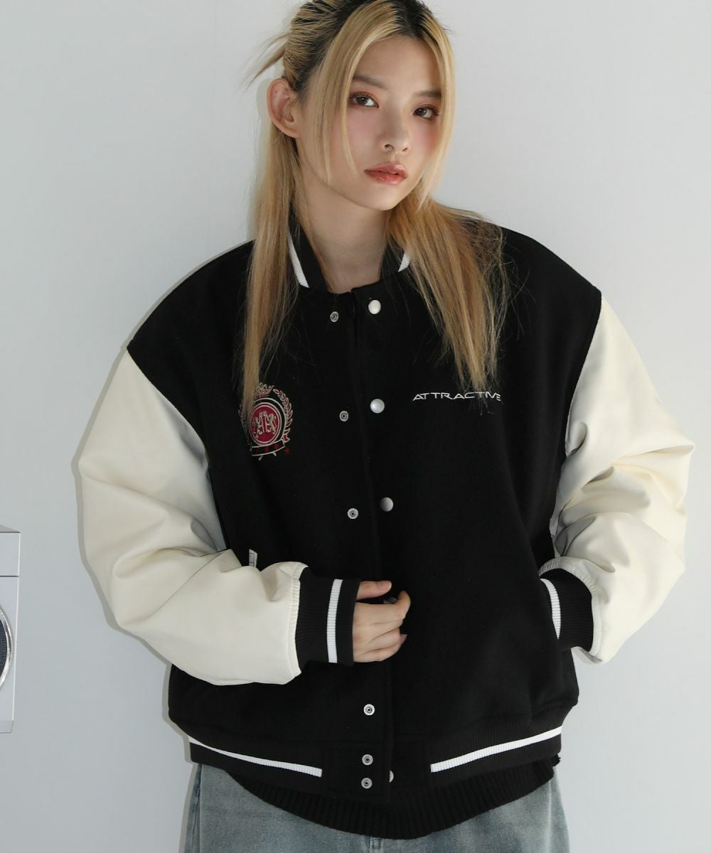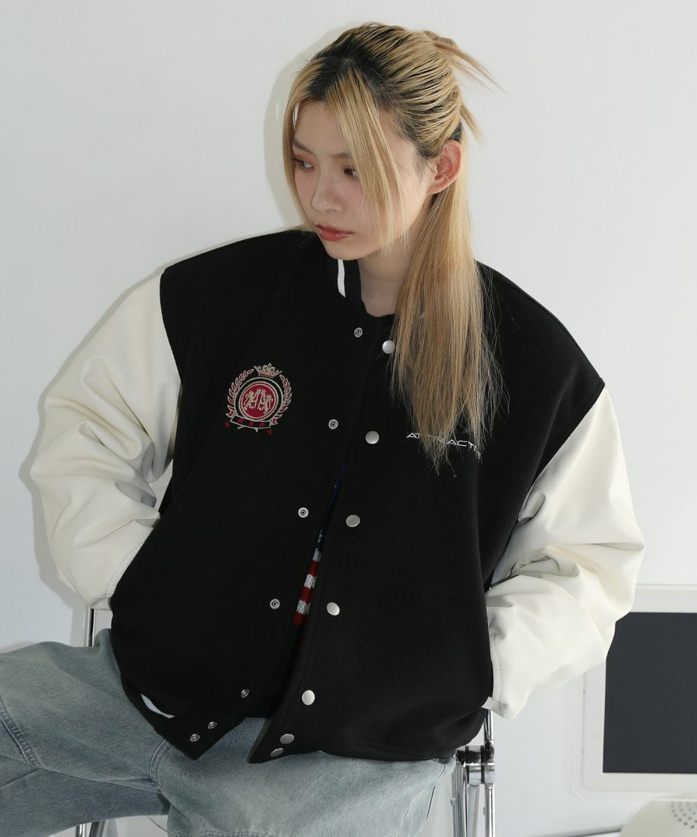 ロゴワッペン袖切替ビッグシルエットスタジャン