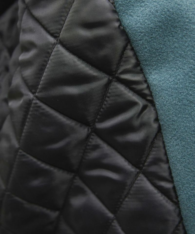 身頃は保温性に優れたメルトン素材、裏地はキルティング仕様になっています。裏地はポリエステル100%、リブ部分はストレッチ性もあり、着脱や動作がスムーズに行えるストレスフリーな着心地です。