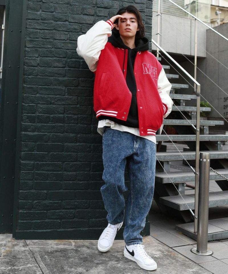 ストリート、カジュアル、古着テイストなど幅広いコーディネートに活躍します。ワイドパンツやチノパンツと合わせた着こなしがおすすめです。