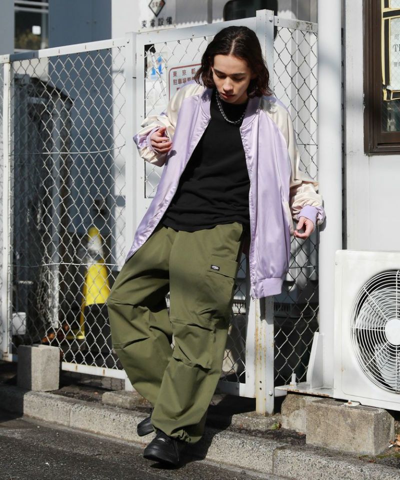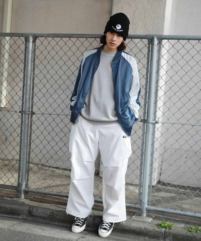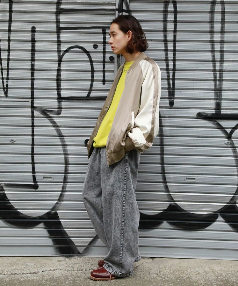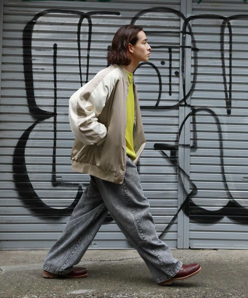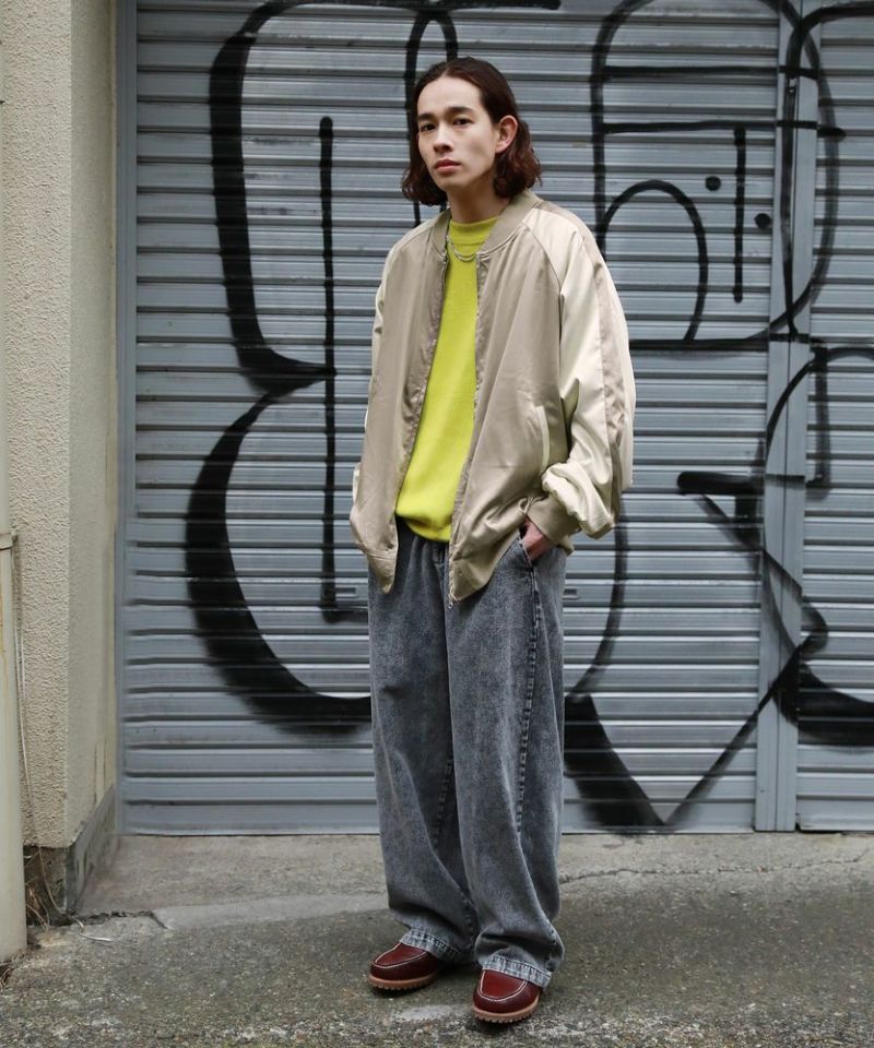 デニムパンツやカーゴパンツなど太めボトムと合わせたストリートライクな着こなしがおすすめ。ゆとりのあるデザインなので、インナーにはルーズなカットソーやスプリングニットなども着込むことができ、インナー次第でロングシーズン着回しが可能です。