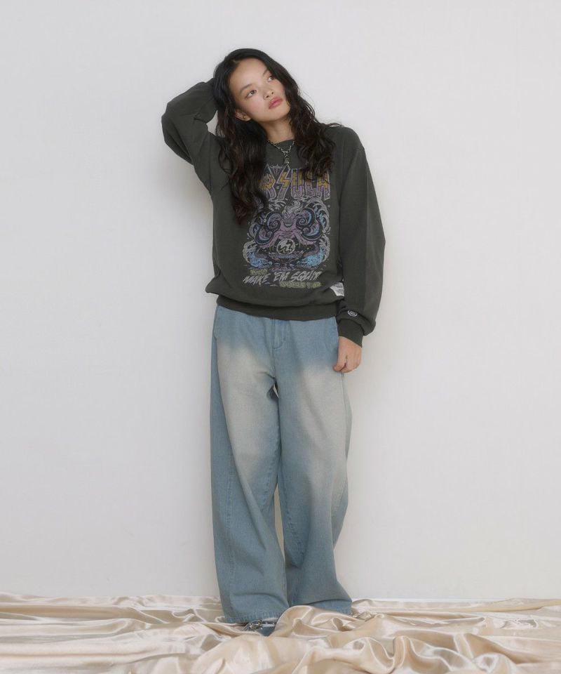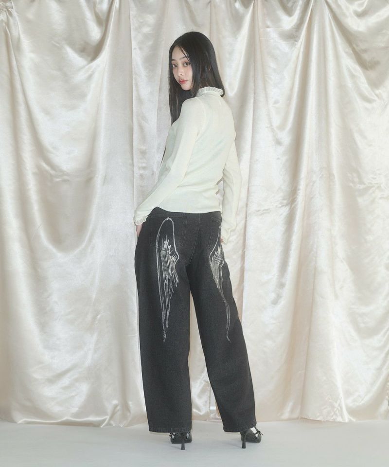 ・ヒップのエンジェルプリントが目を惹くワイドシルエットパンツ。