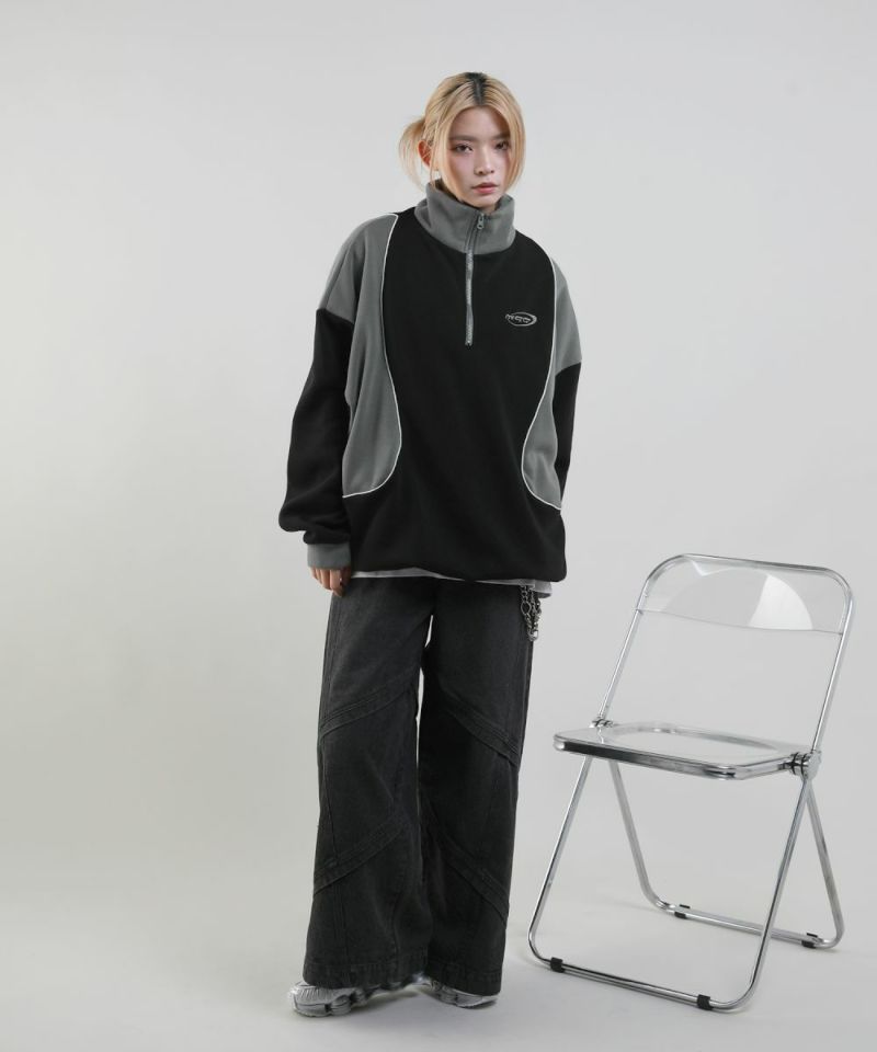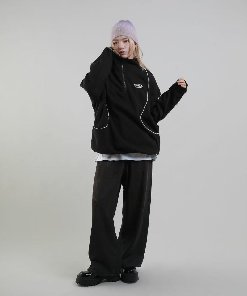オーバーサイズハーフジップ プルオーバー フリース/スウェット