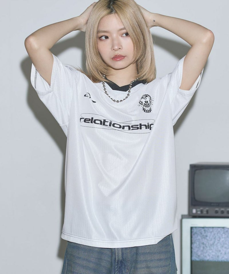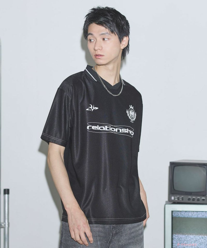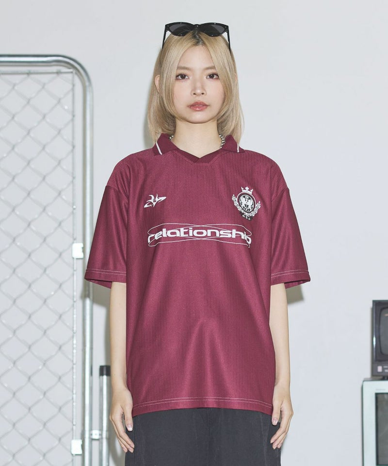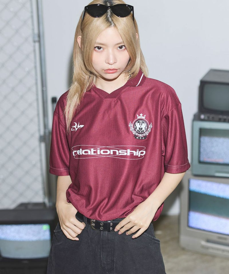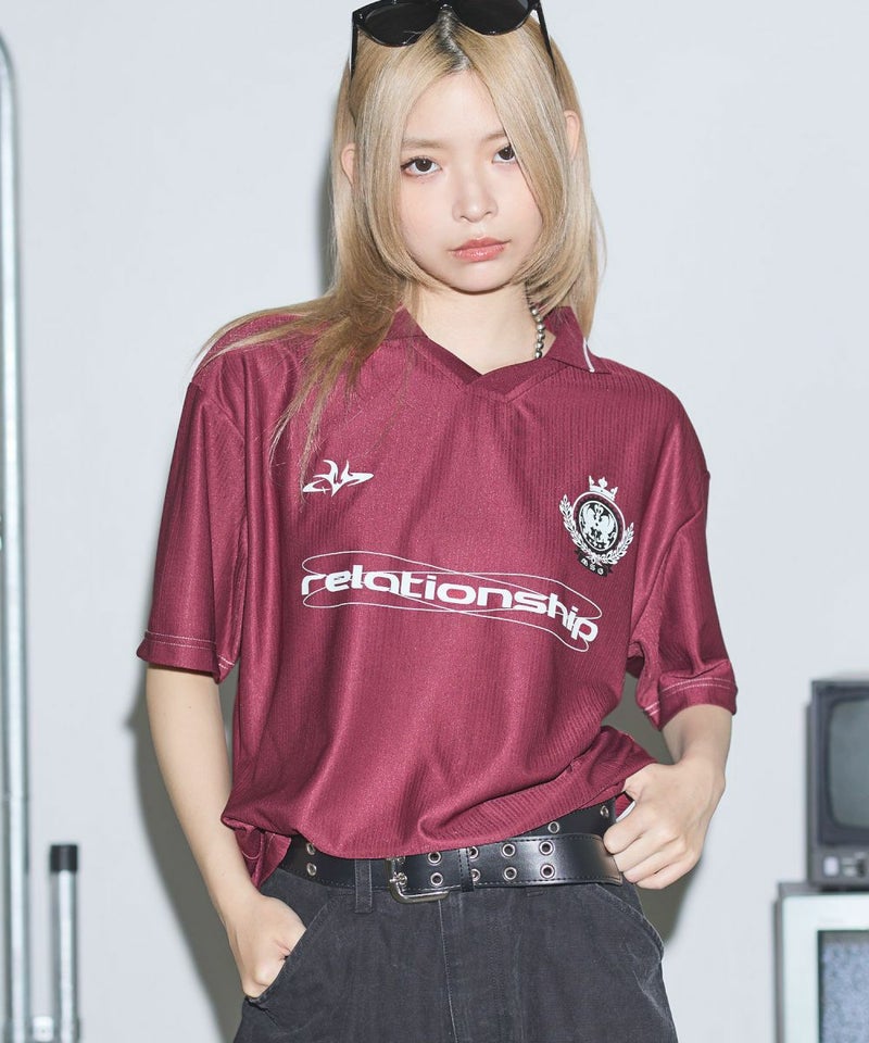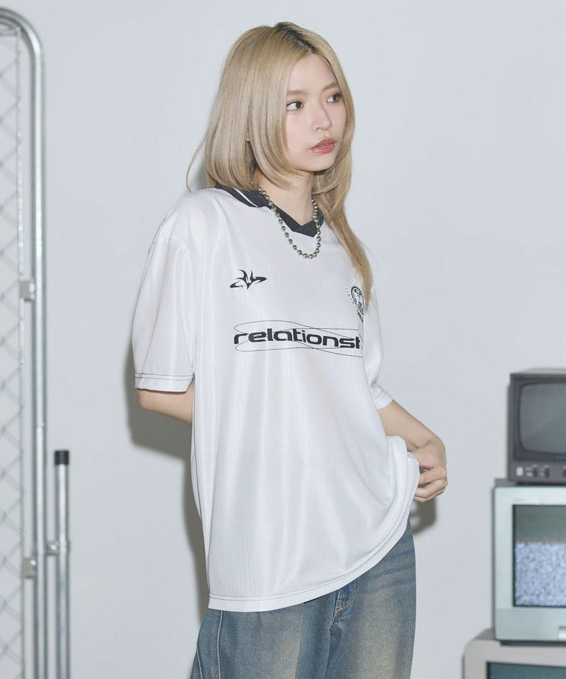 オーバーサイズ襟配色ロゴプリントゲームTシャツ ユニフォームシャツ