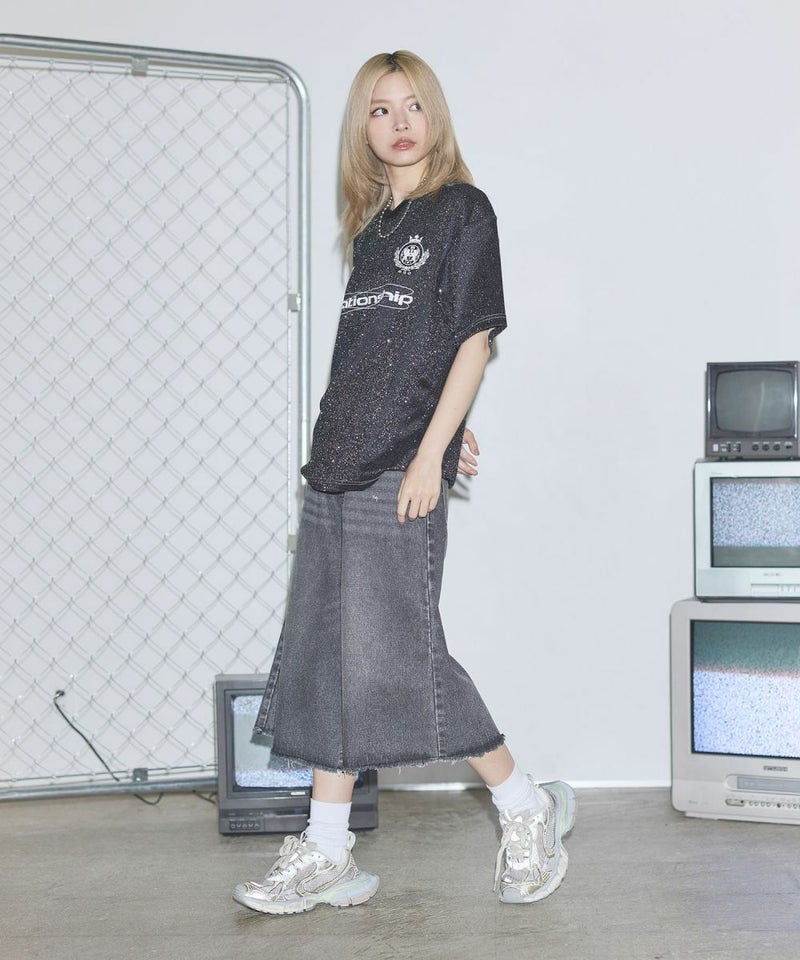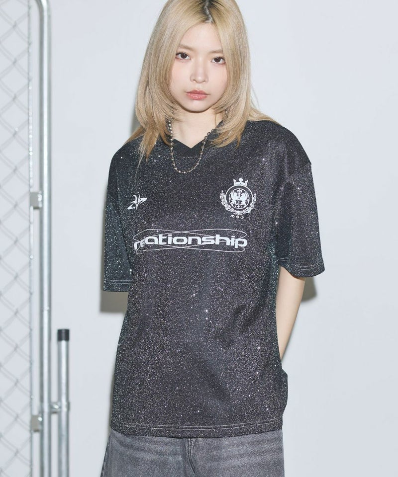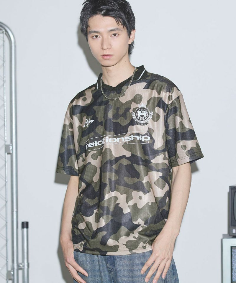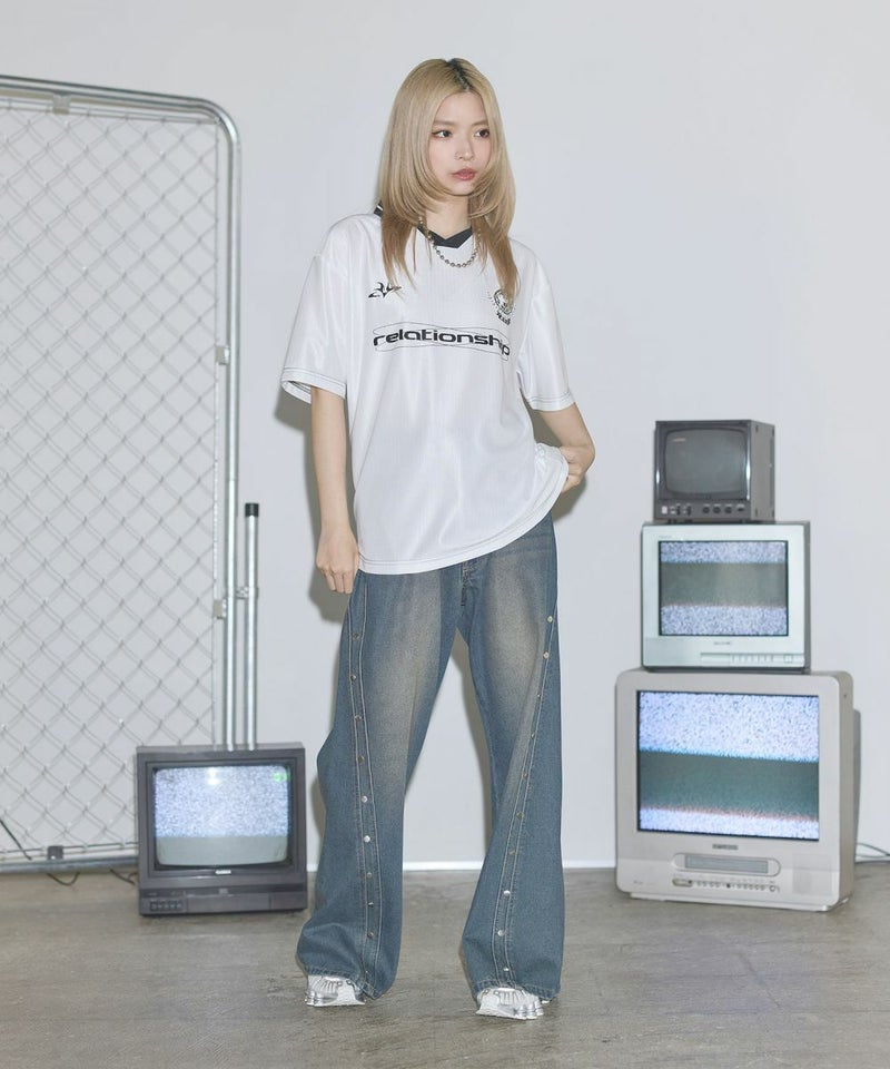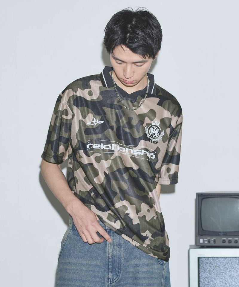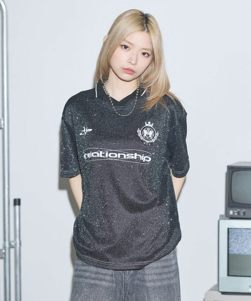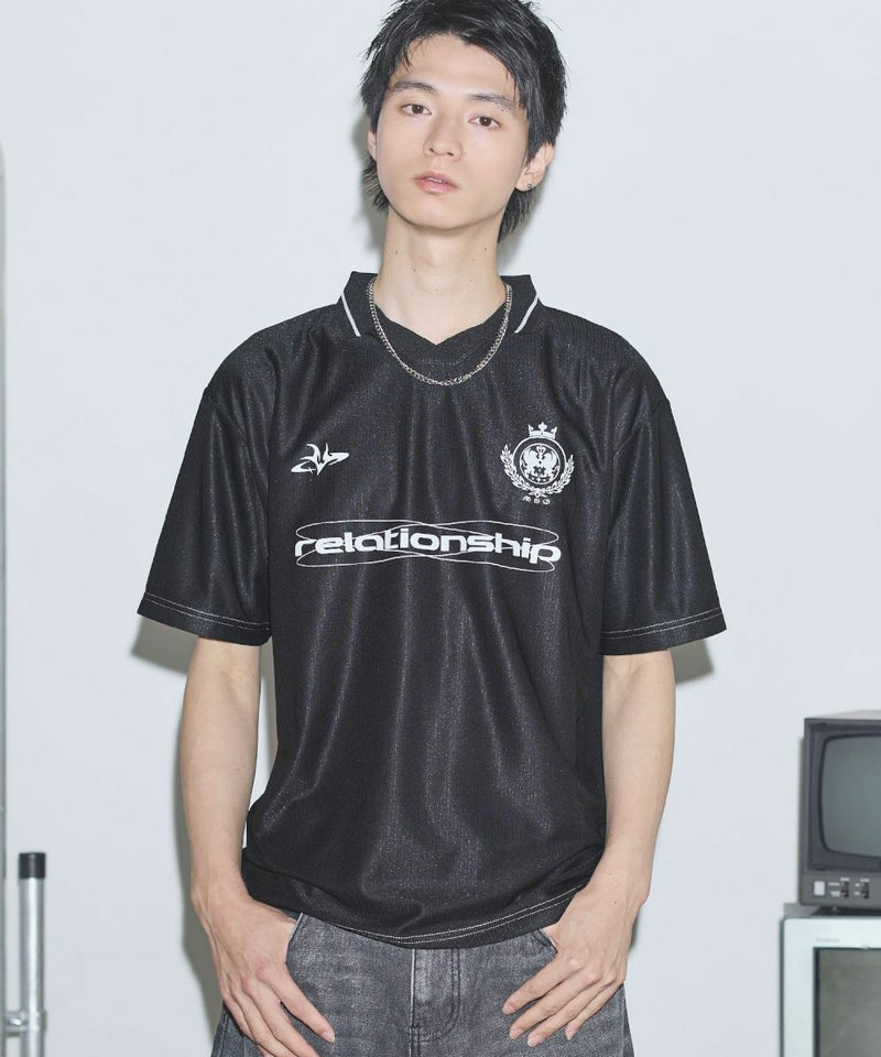 オーバーサイズ襟配色ロゴプリントゲームTシャツ ユニフォームシャツ