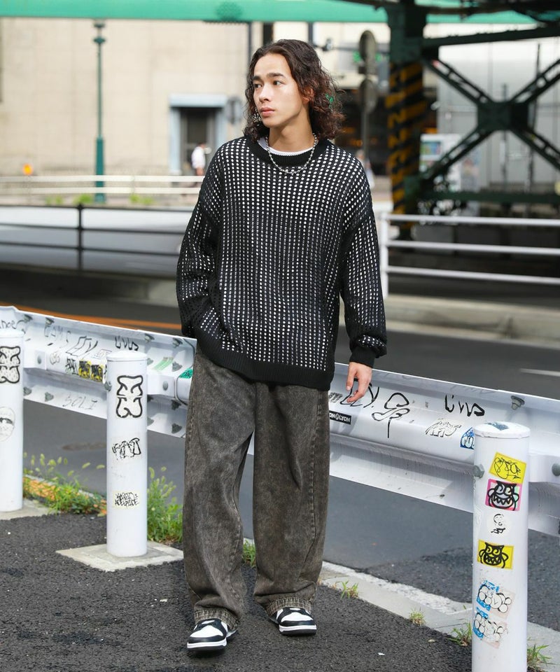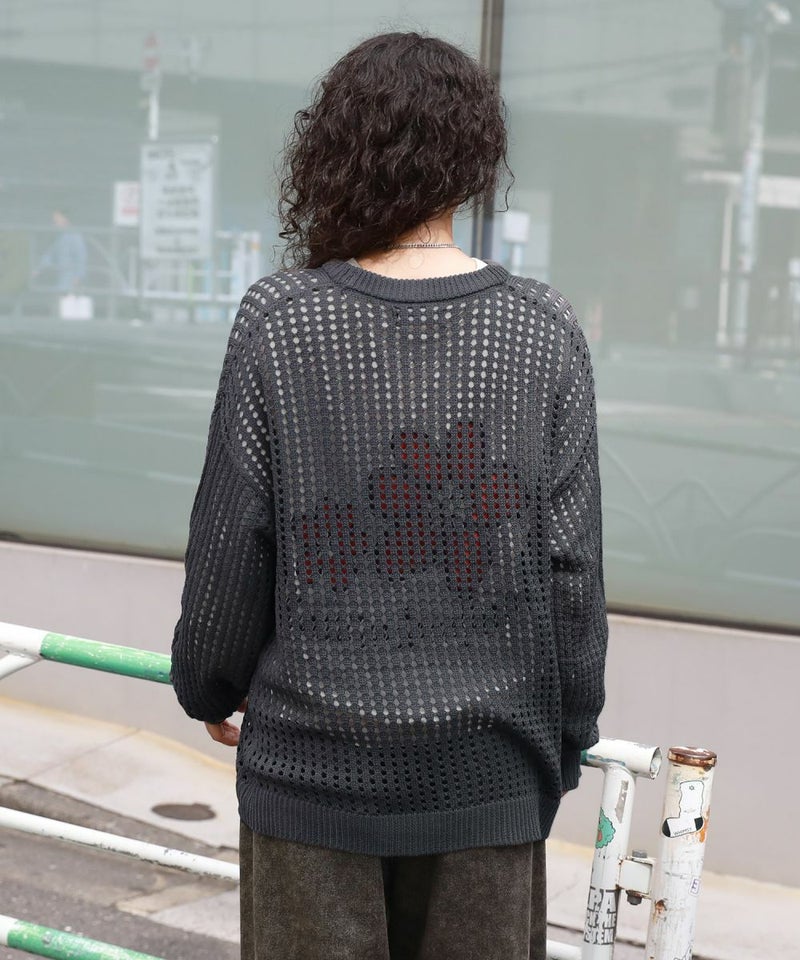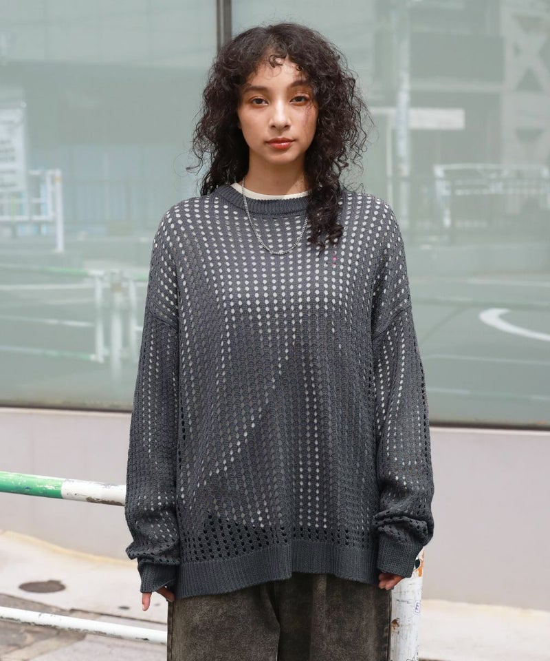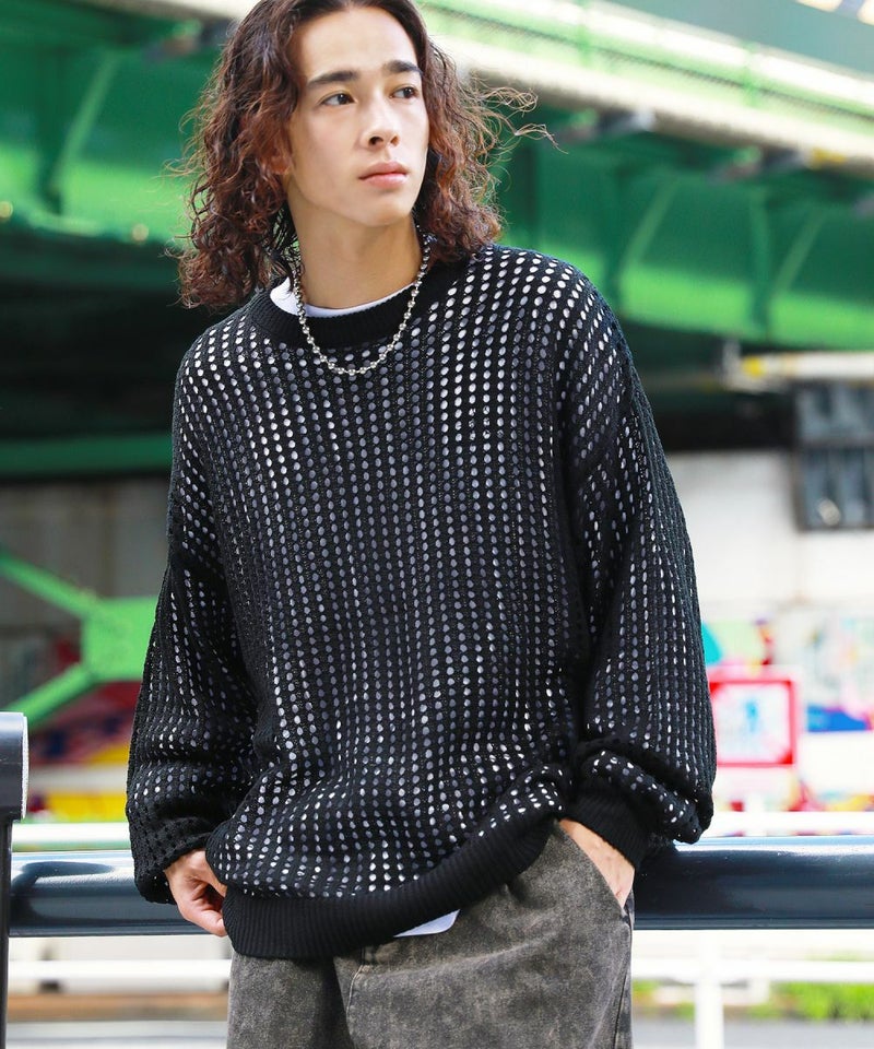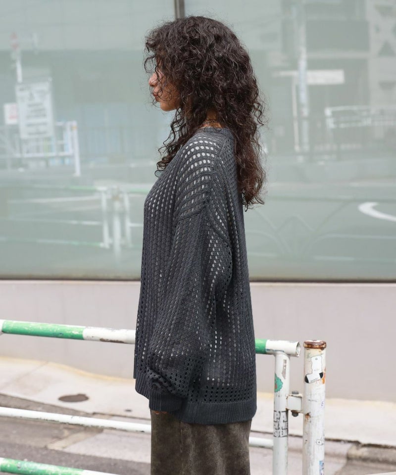 オーバーサイズ透け編みメッシュニット