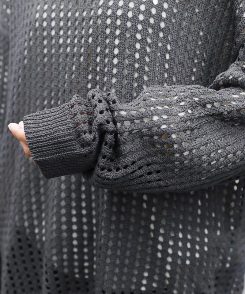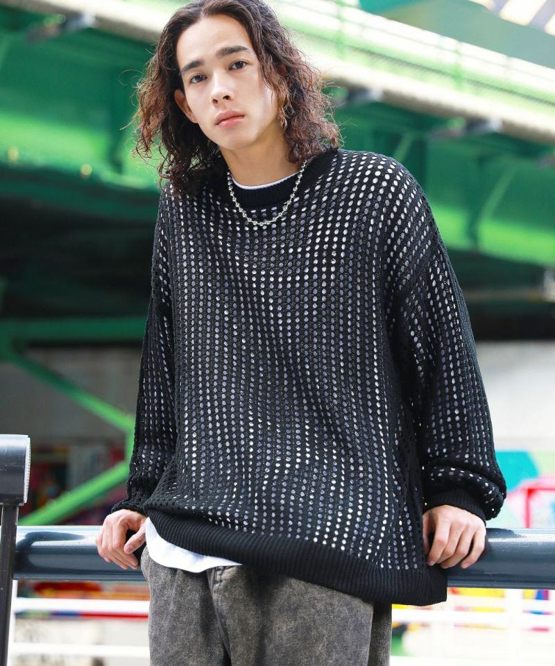 今季注目のメッシュ編みニット。大きめのメッシュ編みでタンクトップやカットソーなどインナーとのレイヤードを楽しめる1着。ざっくりとしたルーズシルエットとドロップショルダーが今っぽいリラックス感を演出します。取り入れるだけで旬の着こなしが作れるおすすめのアイテムです。