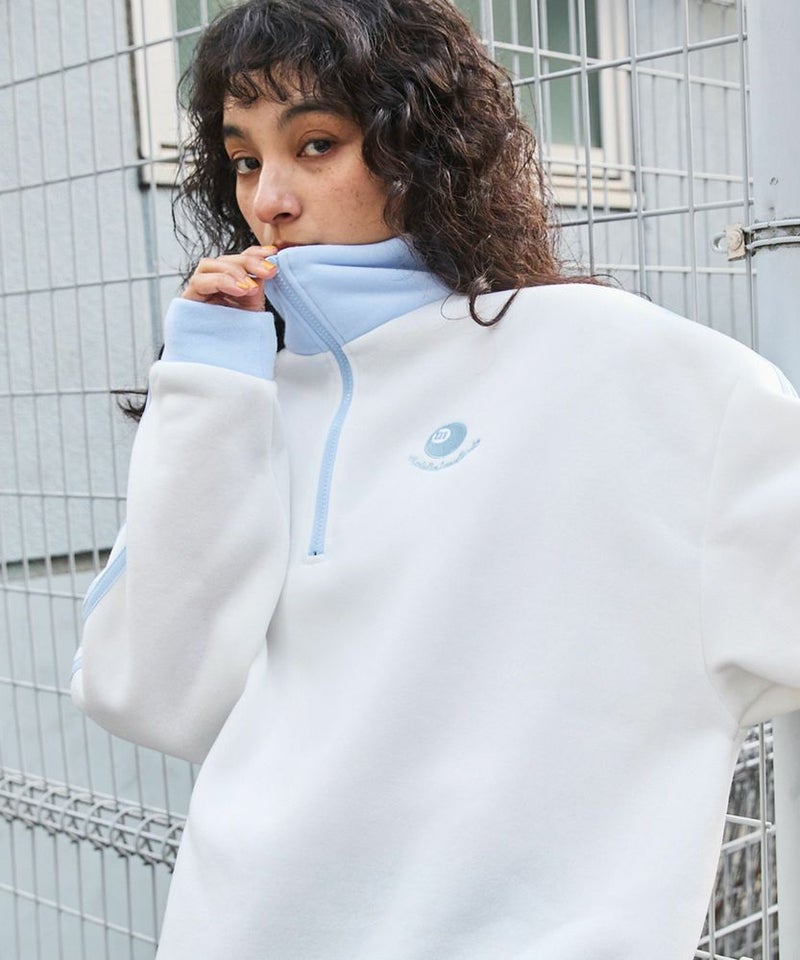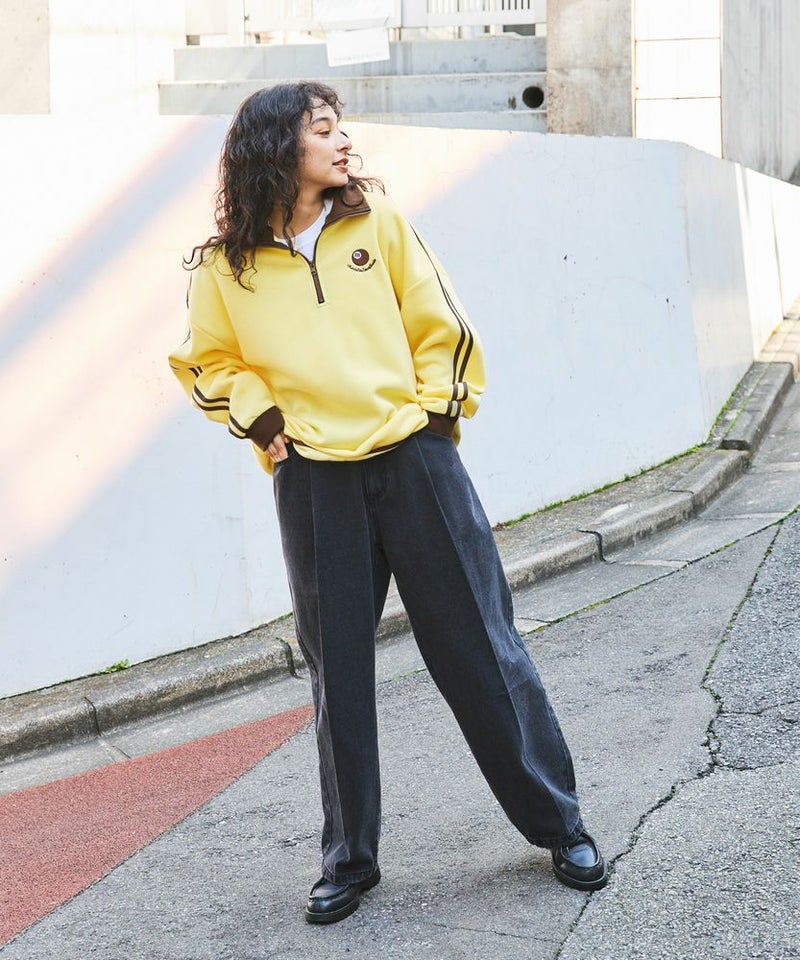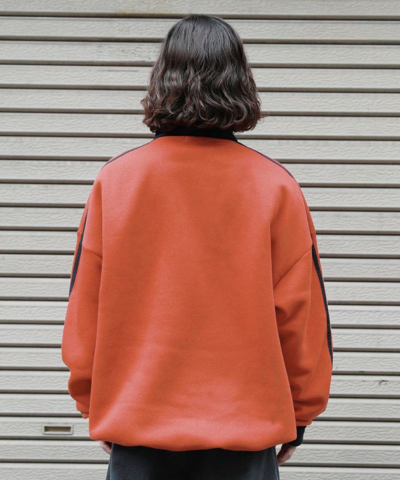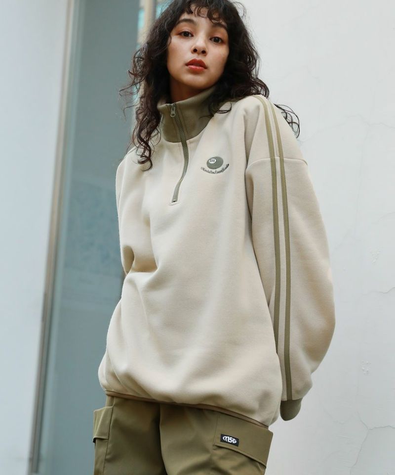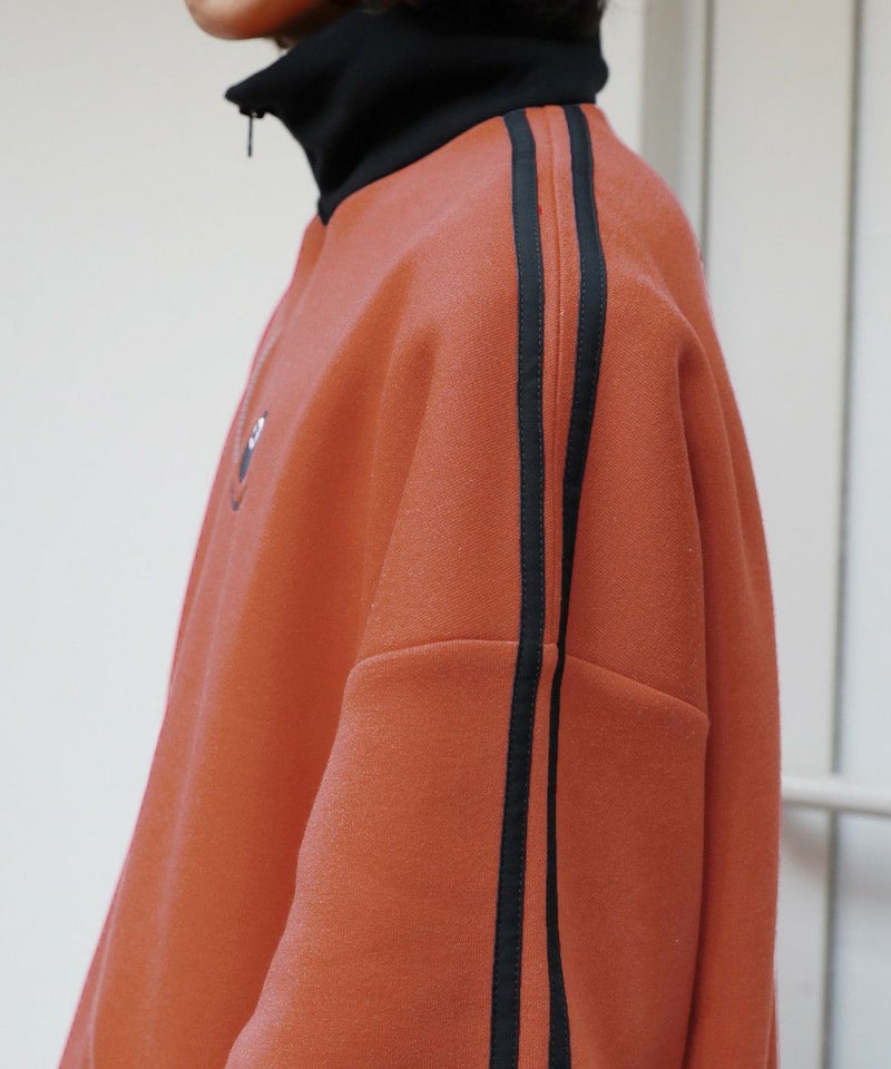 オーバーサイズハーフジップスウェットプルオーバー 配色 ビリヤードロゴ ワンポイント刺繍 サイドライン トラックジャケット