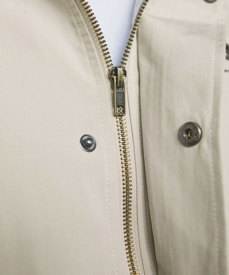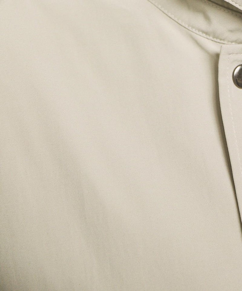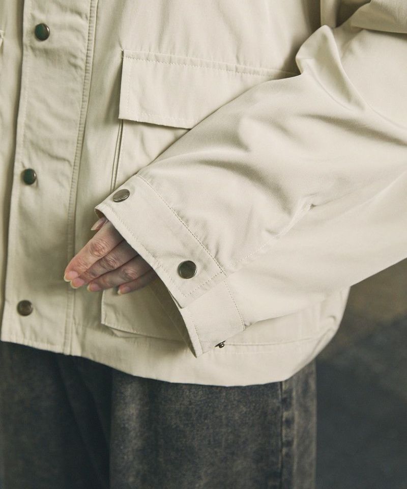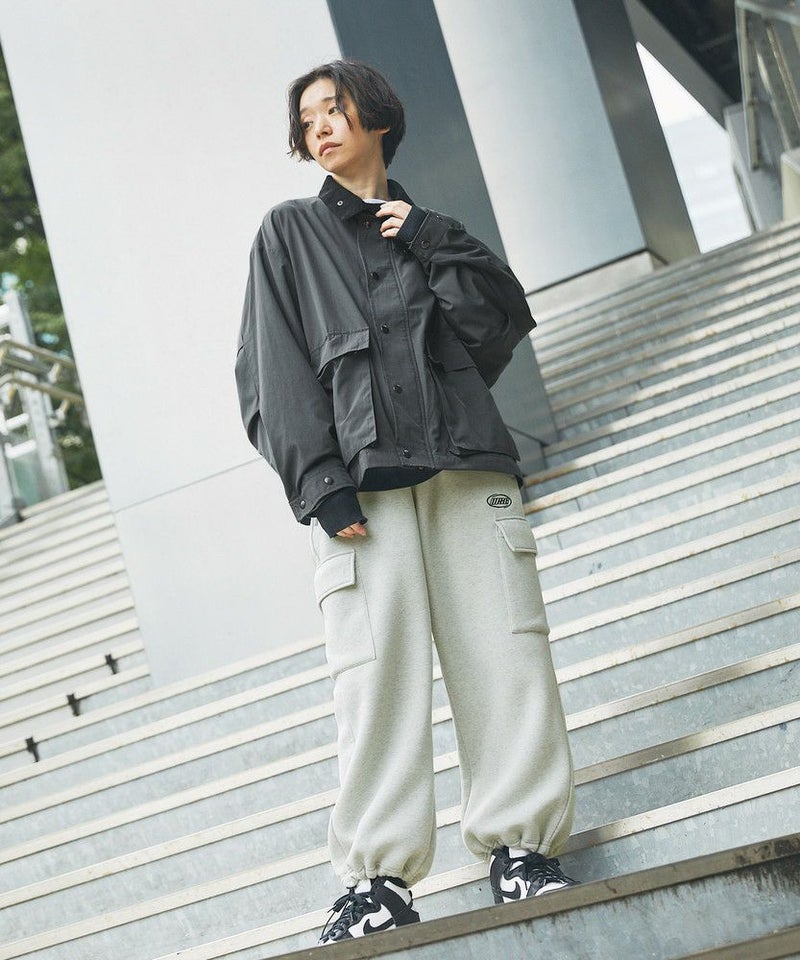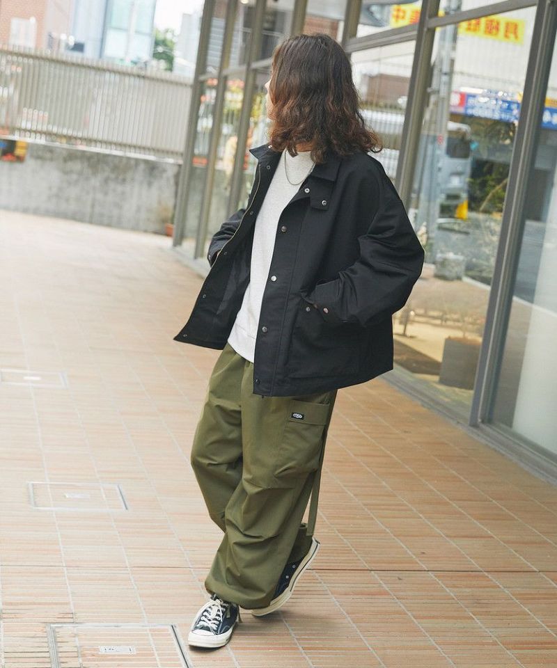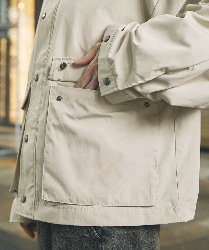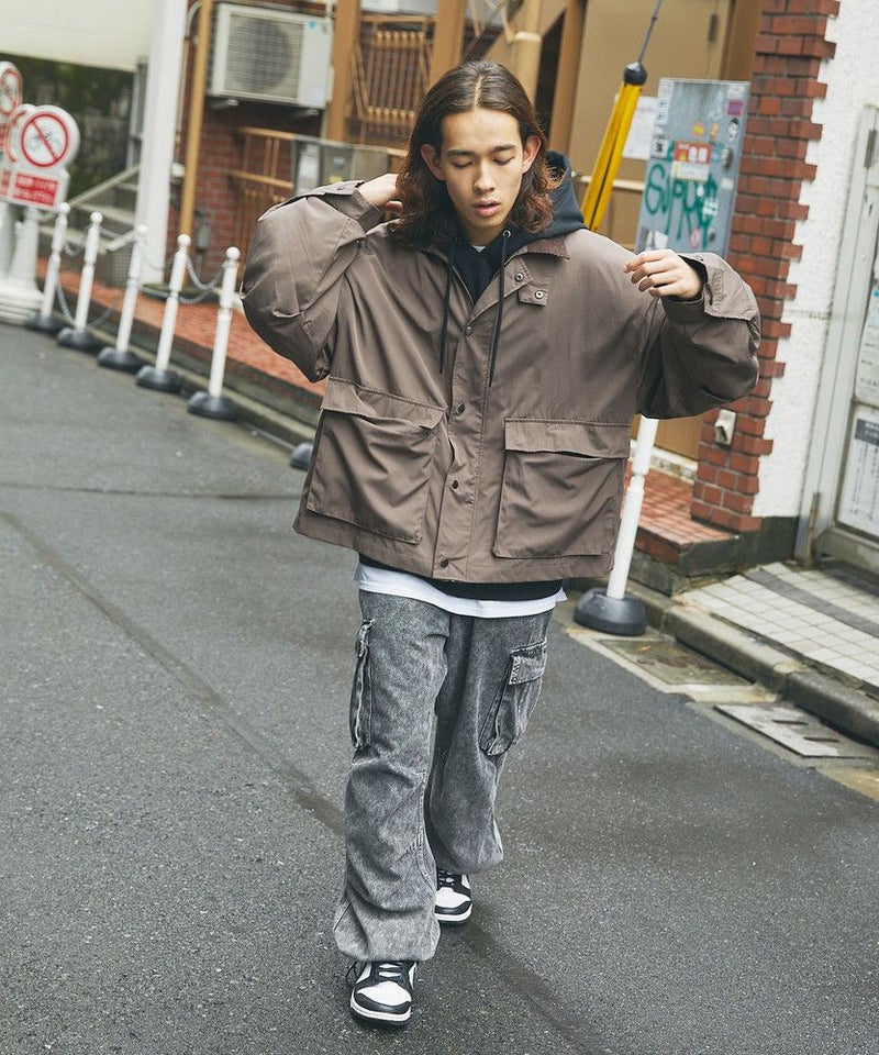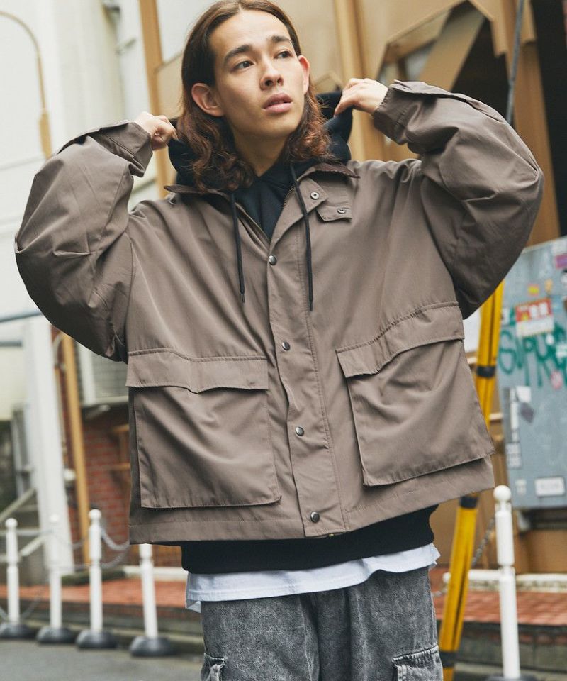 襟部分のコーデュロイ切り替えがポイントのビッグシルエットブルゾン。程よくゆとりをもたせたシルエットで、ラフな着こなしが楽しめるサイズ感に仕上げました。大き目のボタン付フラップポケットやジップ&スナップボタンの前立てなど、実用的なディテールが満載です。さらに襟元のチンストラップを閉めてハイネック仕様にもなる2way仕様。コーデに合わせたアレンジを楽しめて、防寒・防風性もアップします。ユニセックスで着用可能なので、男女問わず手軽に旬のコーディネートが楽しめるアイテムです。
