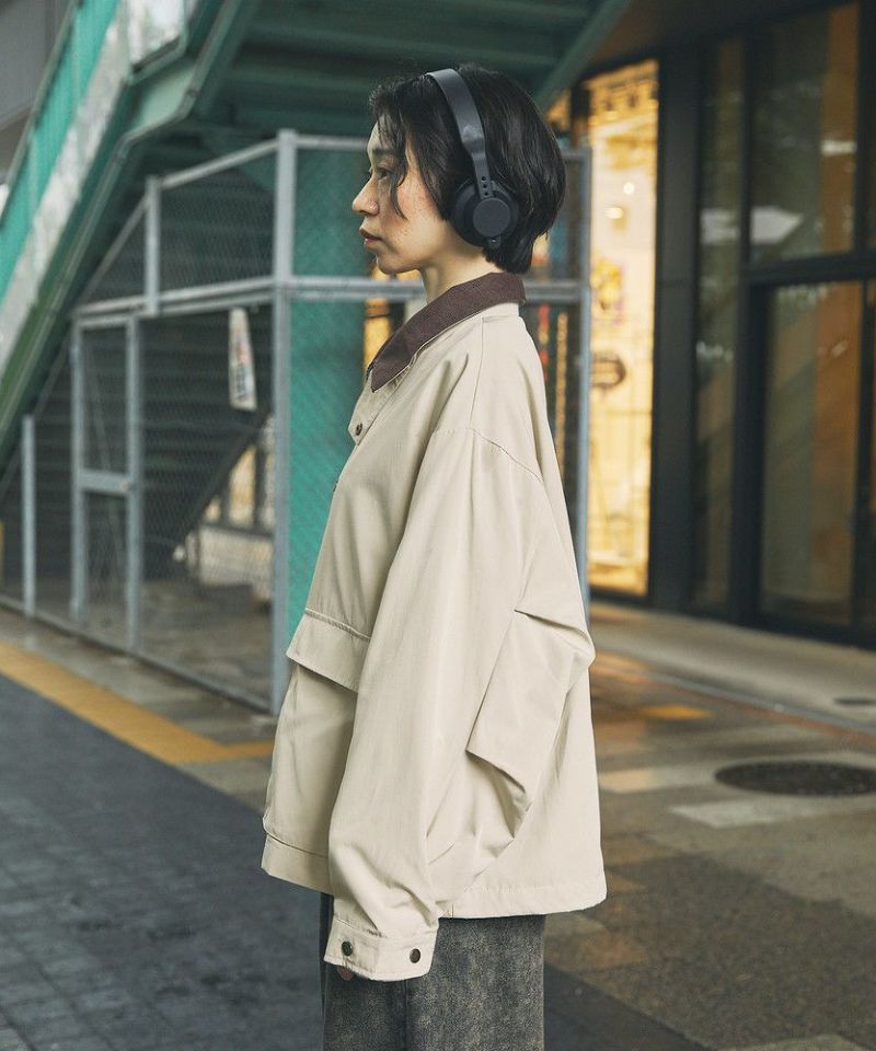 襟コーデュロイ切替ビッグシルエット2wayブルゾン