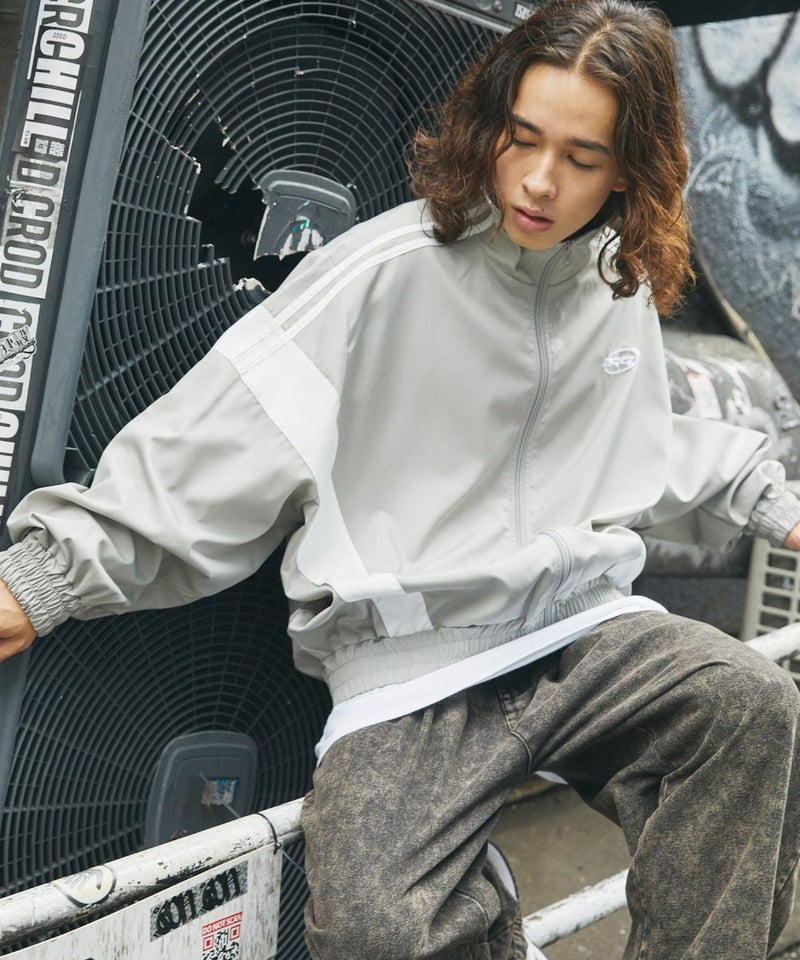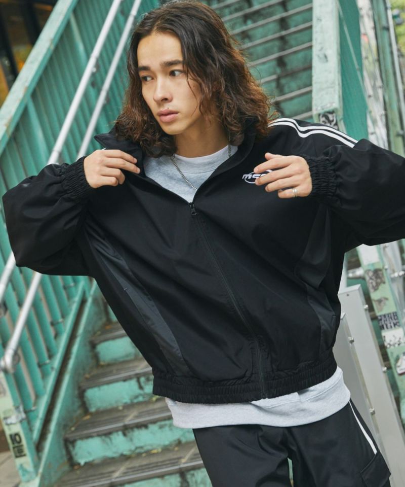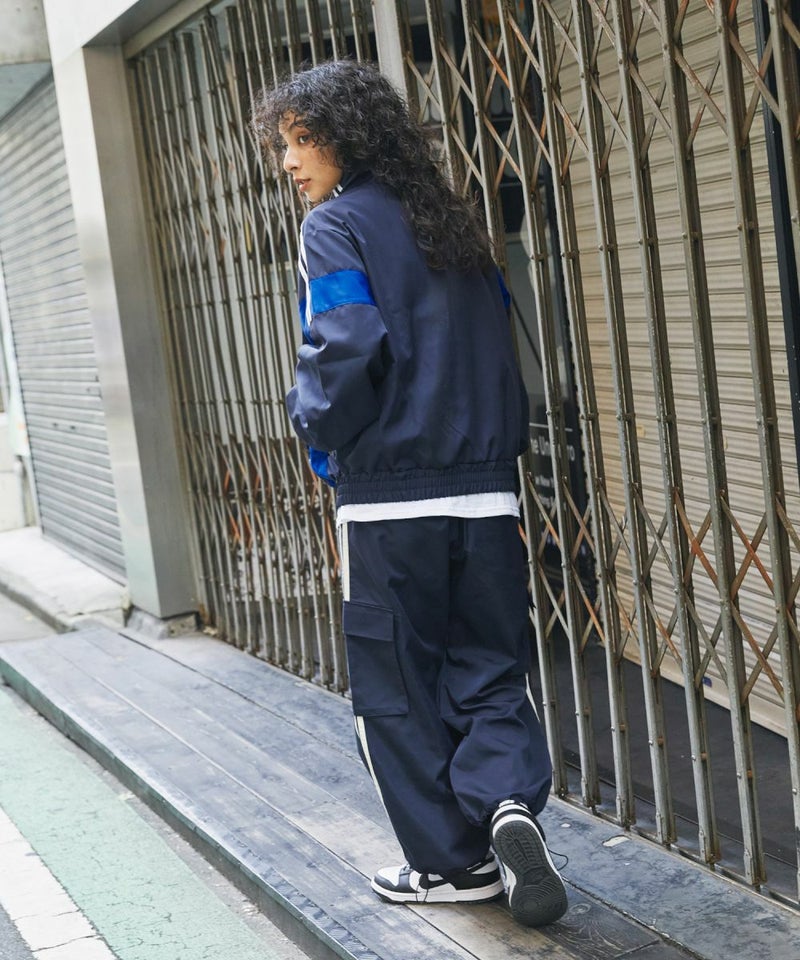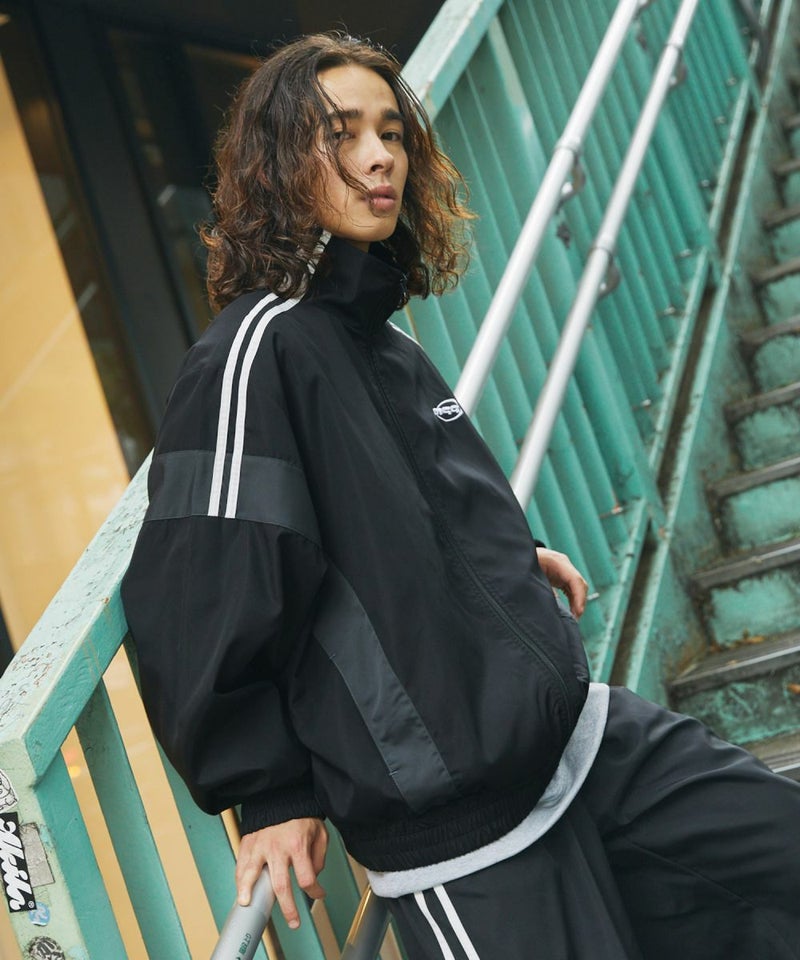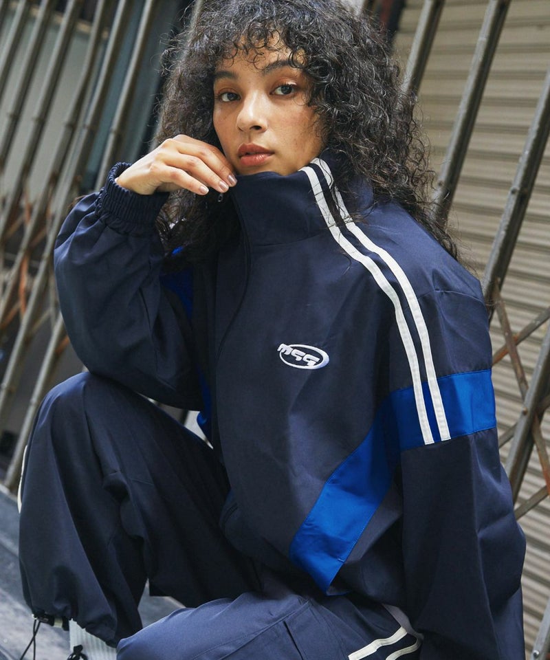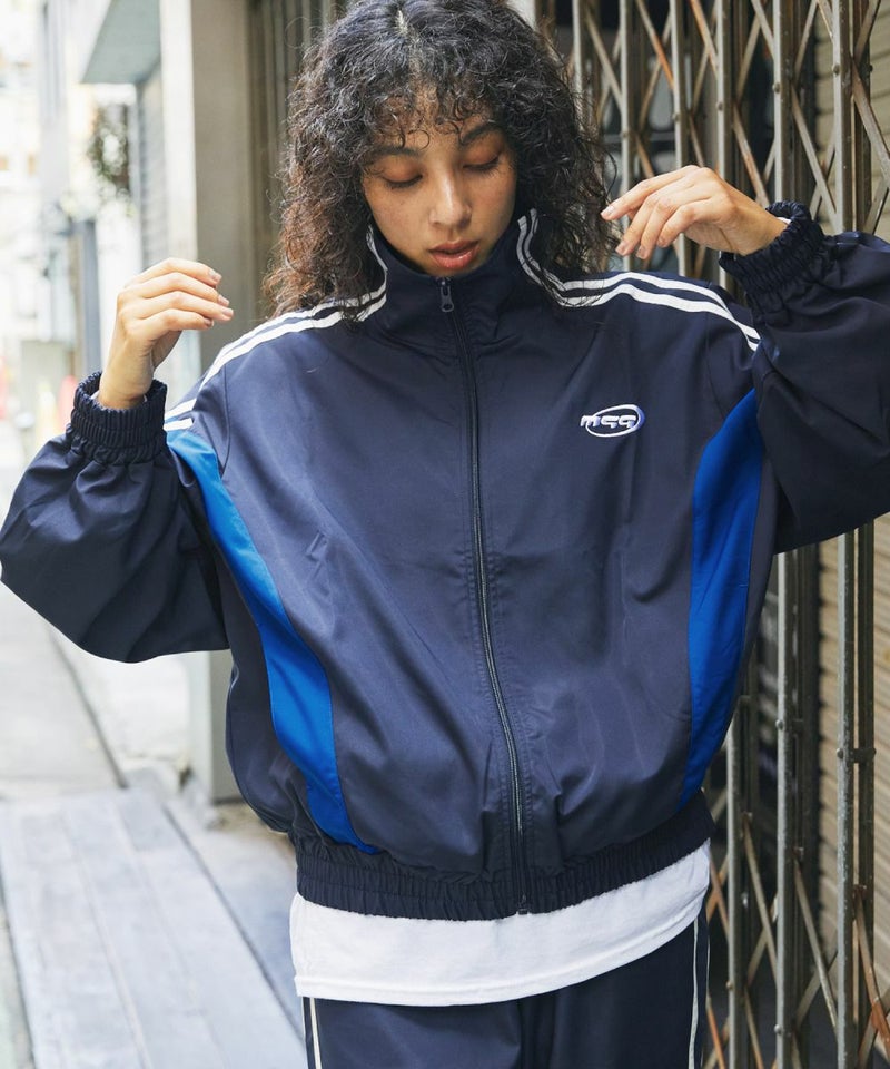 スポーティーな雰囲気のレーシングジャケット。肩の縦ライン部分が切り替えデザインが入ったジャケット。ドルマンスリーブで、袖と裾にはリブが施されているため、きれいなバルーンシルエットを再現。左胸にはオリジナルのブランドロゴを配しております。ジップを上まで閉めてハイネックの着こなしもおすすめ。女性にもおすすめなユニセックスアイテムです。