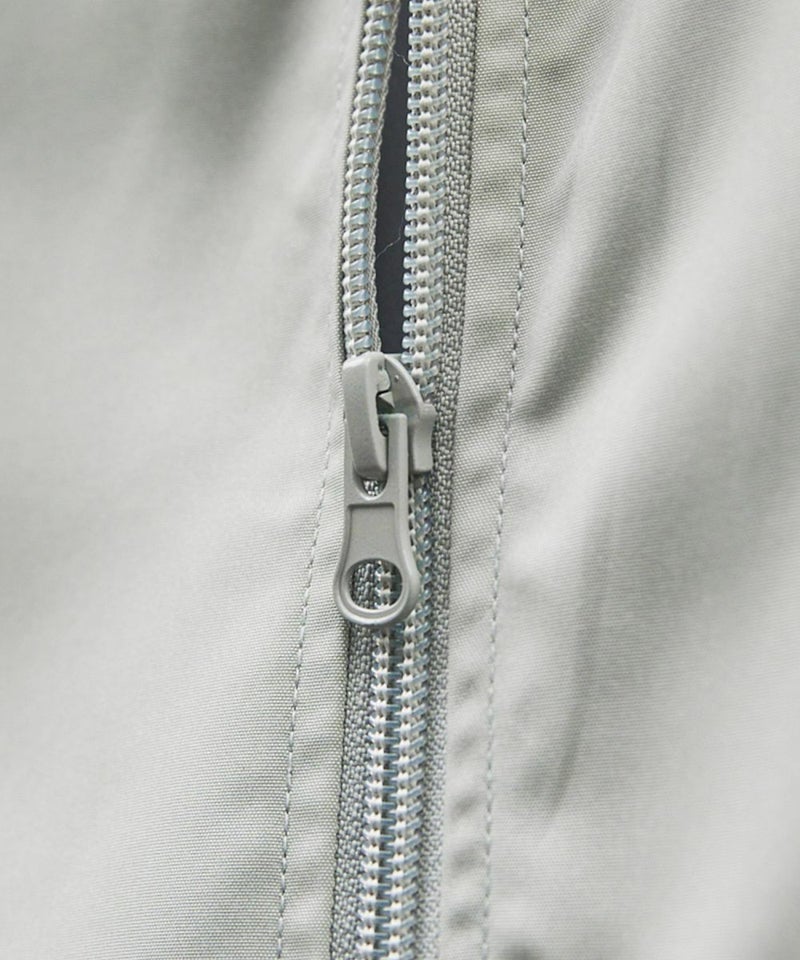 柔らかな生地感と、光沢感が特徴のポリエステル素材の生地。軽量なためストレスフリーに着用いただけます。