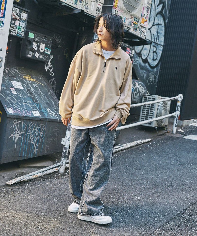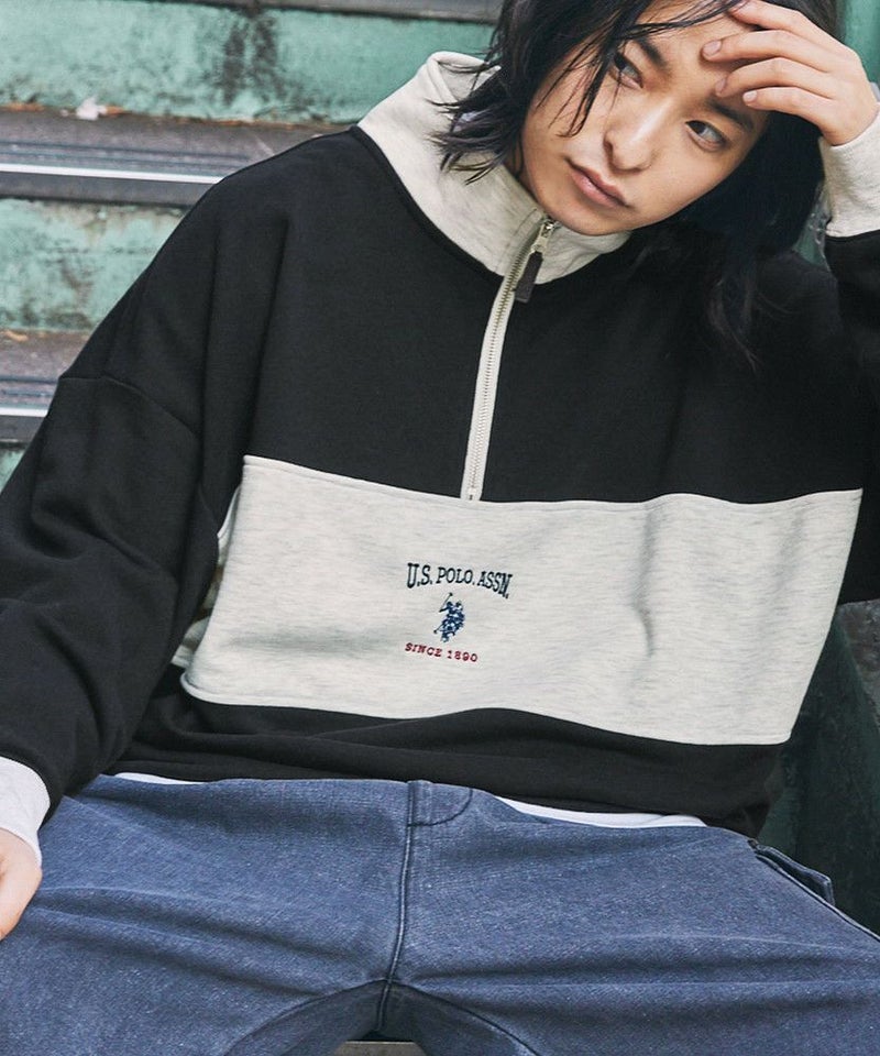 U.S. POLO ASSN. 別注 ワンポイントロゴ刺繍スタントネックスウェットハーフジップ ビッグシルエット