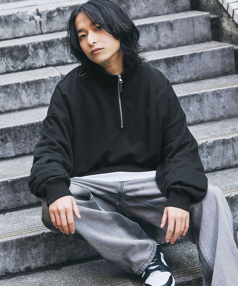 【U.S. POLO ASSN.】から今季トレンドのハーフジップスウェットが登場。ゆったりとしたオーバーサイズで流行りの着こなしが完成します。ジップを閉めてネック部分を立たせると首元をしっかり覆ってくれて防寒対策に。袖はリブ仕様で、バルーンスリーブのゆったりとしたサイジングが今っぽさをプラス。前立てファスナーのストラップがさり気ないアクセントとなります。