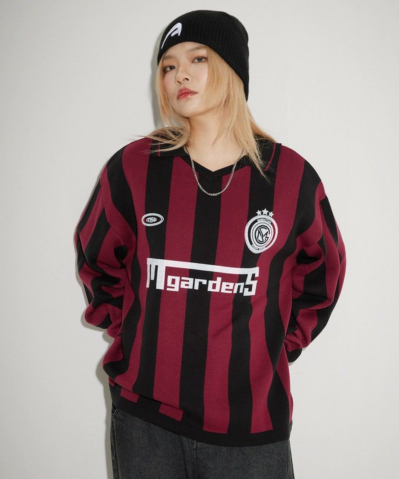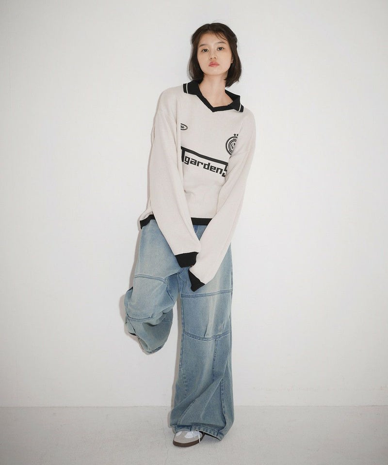3. オーバーサイズ襟配色ジャガードゲームシャツニット ユニフォームニット