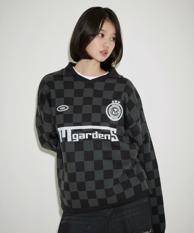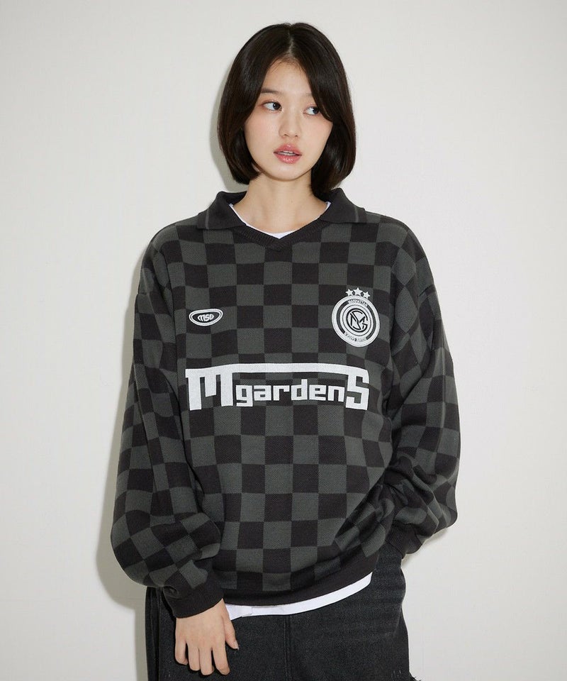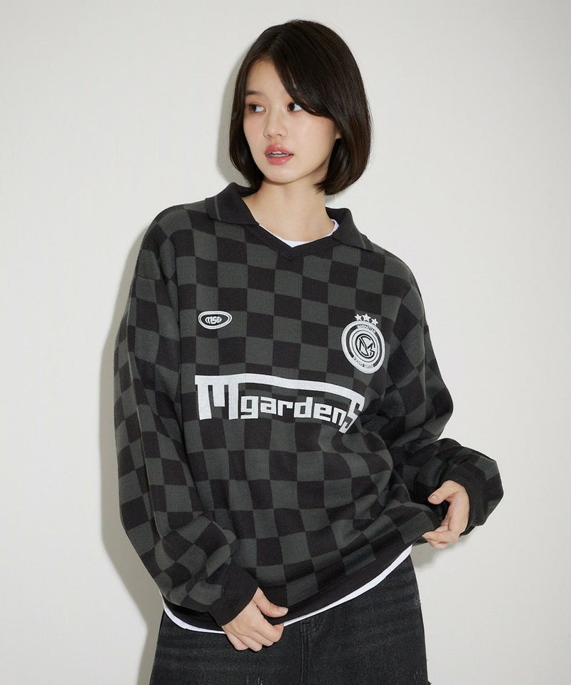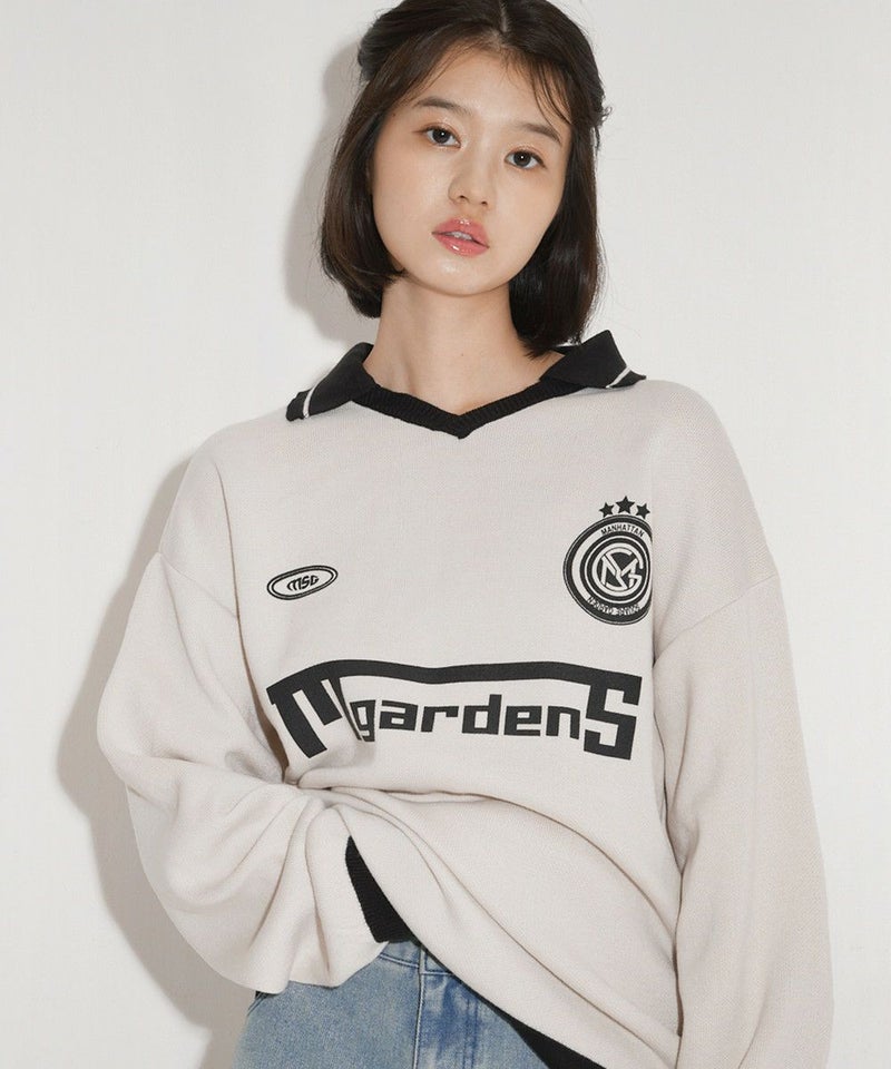 オーバーサイズ襟配色ジャガードゲームシャツニット ユニフォームニット