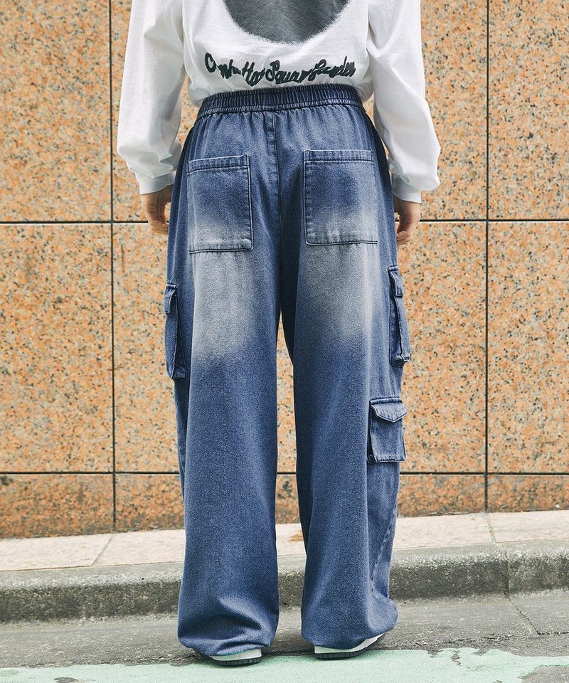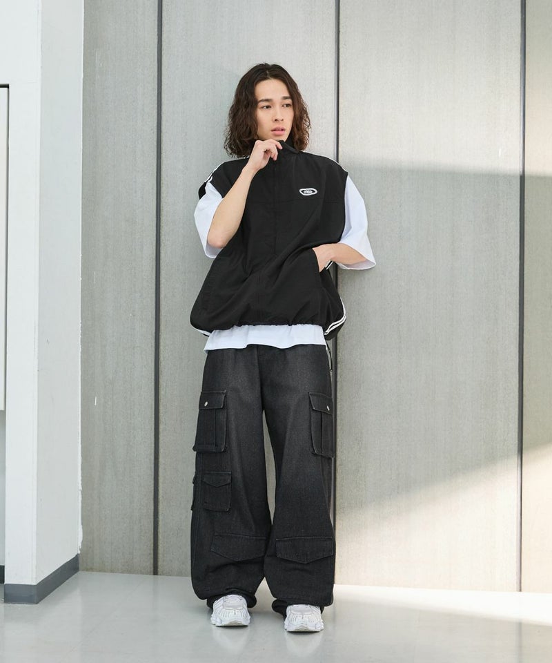 ナイロン/デニムマルチポケットドレープバギーカーゴパンツ
