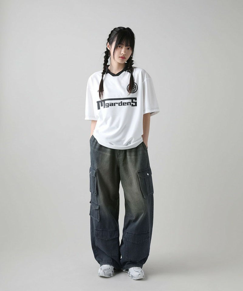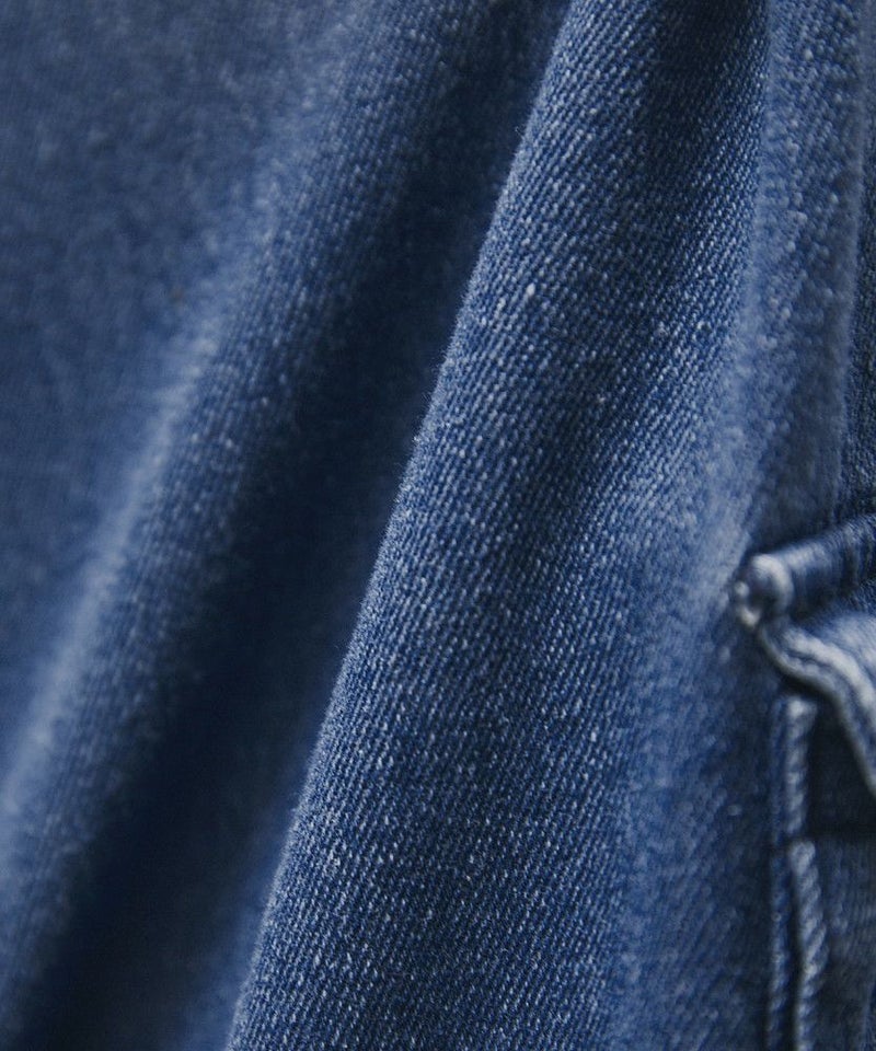 デニム素材は綿100%のデニム生地に、後加工を施した個性的な表情が特徴。