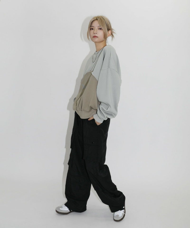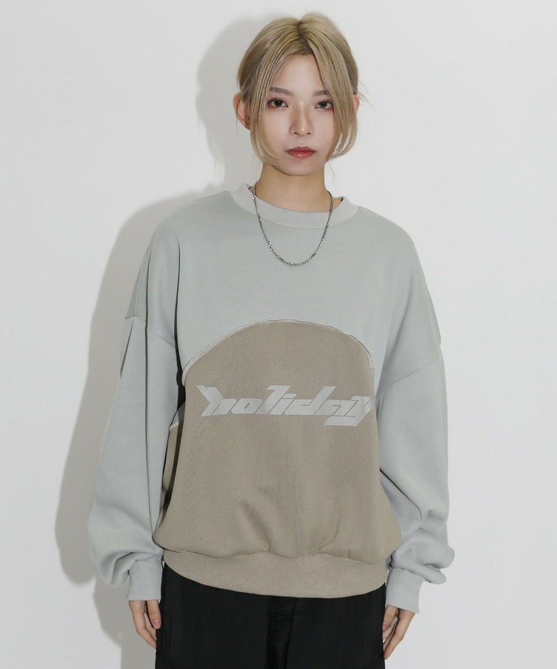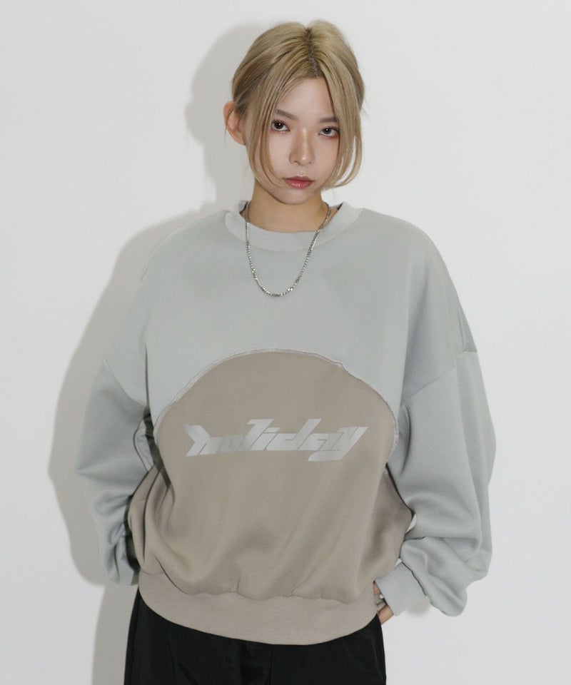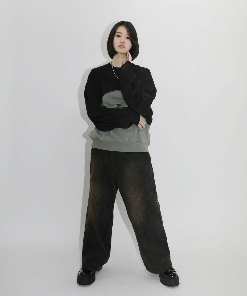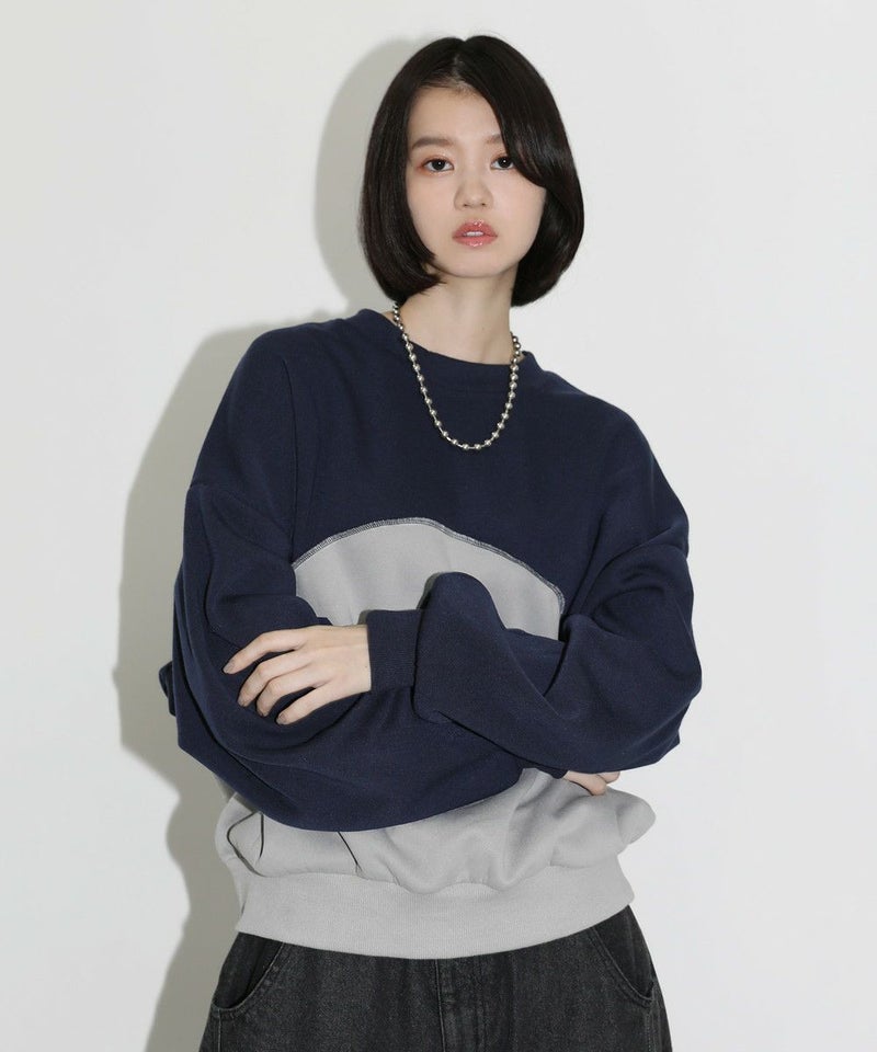 オーバーサイズパネル切替クルーネックプルオーバースウェット