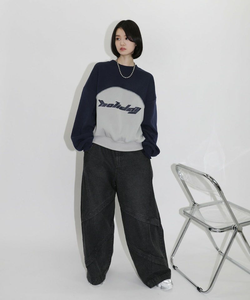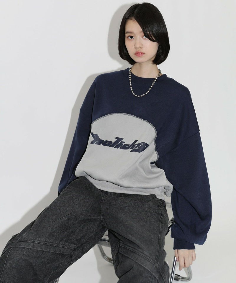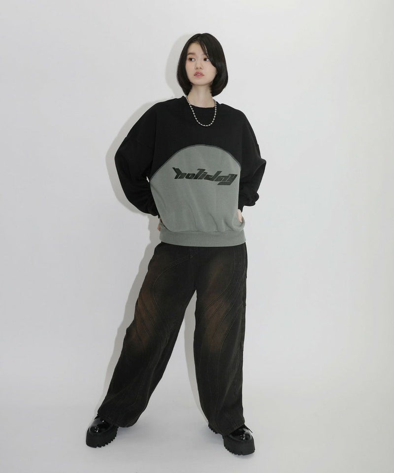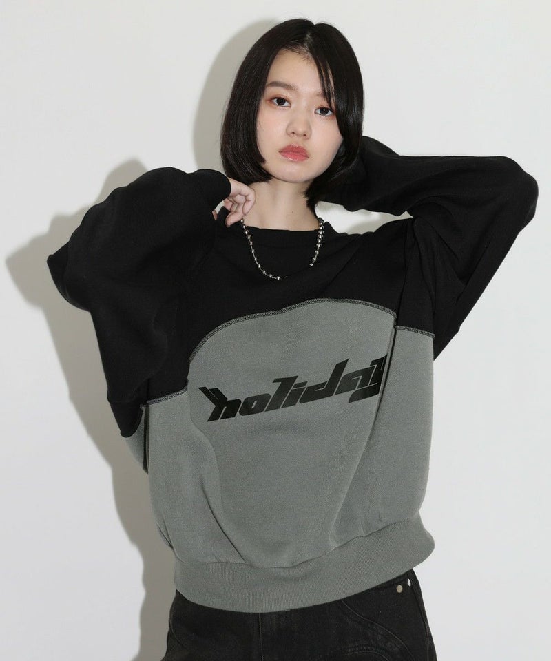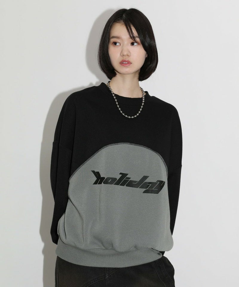 オーバーサイズパネル切替クルーネックプルオーバースウェット