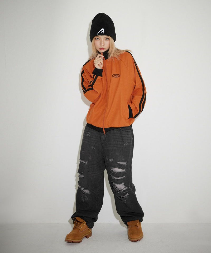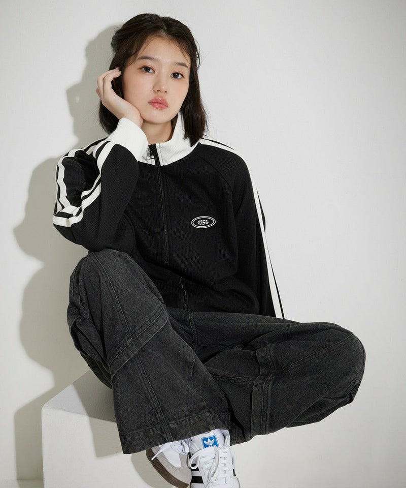立体感のあるワッフル素材で作られたトラックジャケット。凸凹とした表情が特長のワッフル素材を使用することで、定番のトラックジャケットをブラッシュアップしました。コントラストを効かせた配色やスポーティーな袖のラインがアクセントになり、1枚でトレンド感のある着こなしを演出します。胸元にはブランドロゴ刺繍が施されており、さり気なく目を引くポイントに。フロントジップには上下どちらからも開けられるダブルジップを採用しており、開け方次第で幅広い着こなしを楽しめます。ラグランスリーブデザインのルーズシルエットで、今年らしい抜け感に加えリラックス感も表現しました。メンズだけでなく、レディースもメンズライクに着こなせるユニセックスアイテムです。