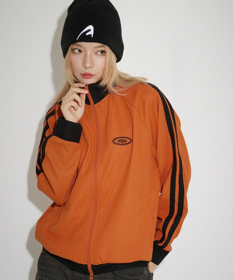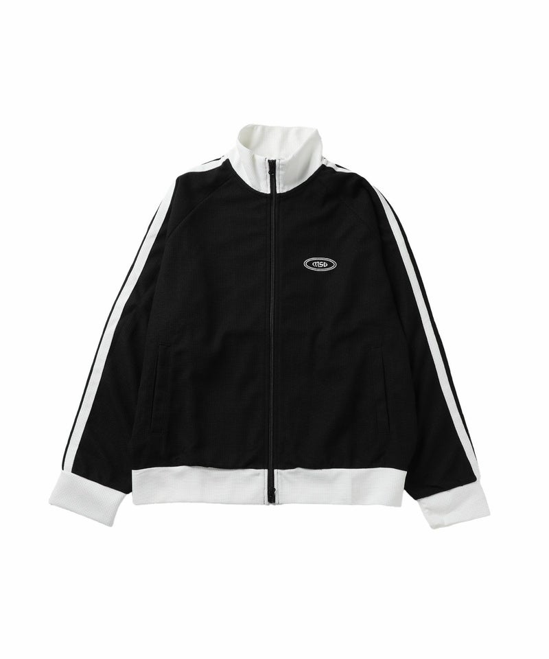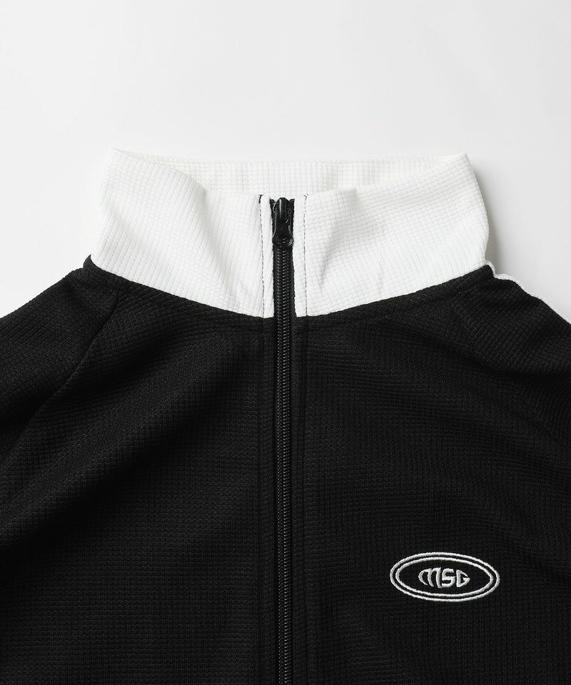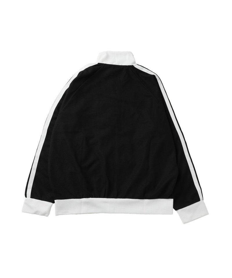 スポーツアイテムのトラックジャケットをワッフル素材でデザインしたことで、カジュアル、ストリート、古着ミックスにも取り入れ易い万能アイテムに仕上げました。ジップを閉じたトップス使いだけでなく、さっと羽織る春のライトアウターとしてもおすすめです。シンプルなボトムスと合わせるだけで今っぽいラフなスタイルが完成します。