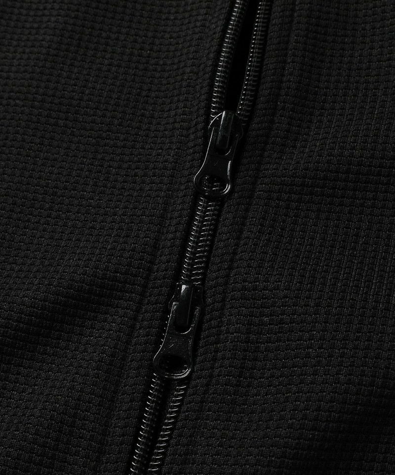 表面に細かな凹凸のあるソフトなワッフル素材を採用。立体的な表情のある生地で、シンプルながらも存在感を発揮します。ポリエステルならではのライトな肌当たりとさらっとした軽い生地感で、着心地も抜群です。