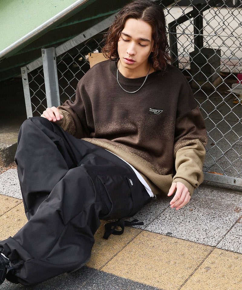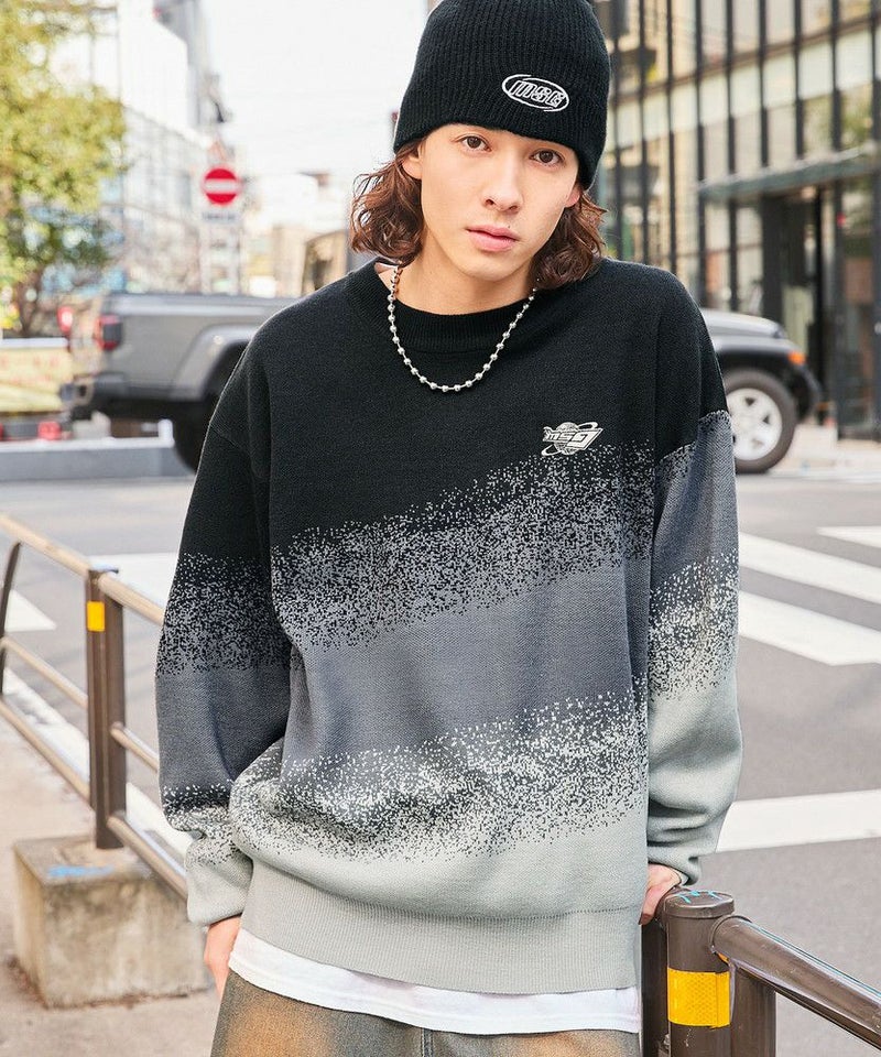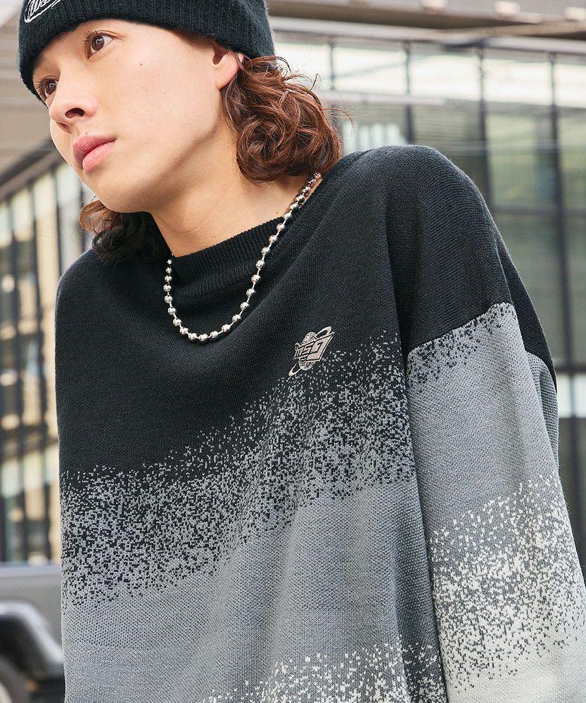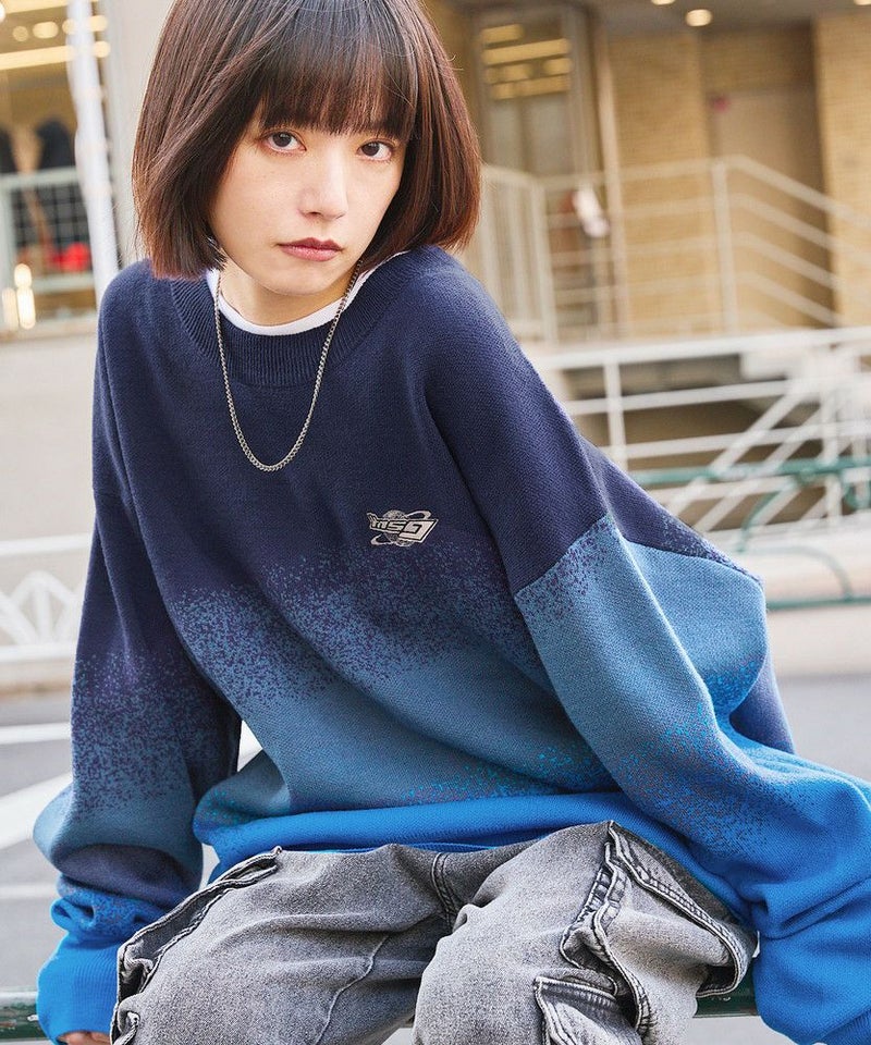 ジャガードニットによるグラデーションパターンが新鮮なオーバーサイズニット。胸元には「MSG」のブランドロゴ刺繍が施されており、ワンポイントに。