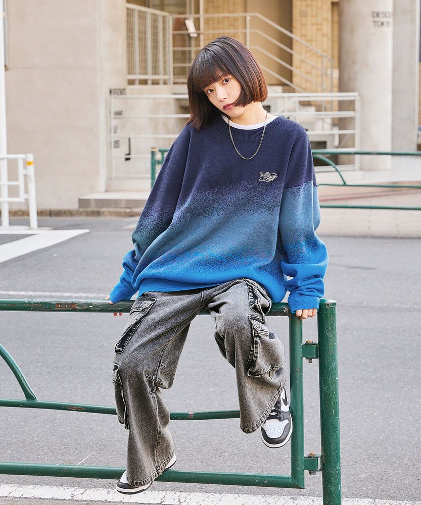 ワンポイントグラデーションオーバーサイズニット