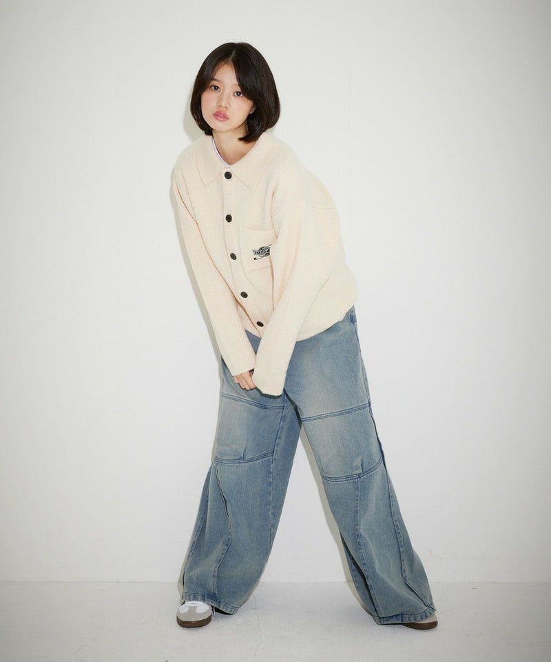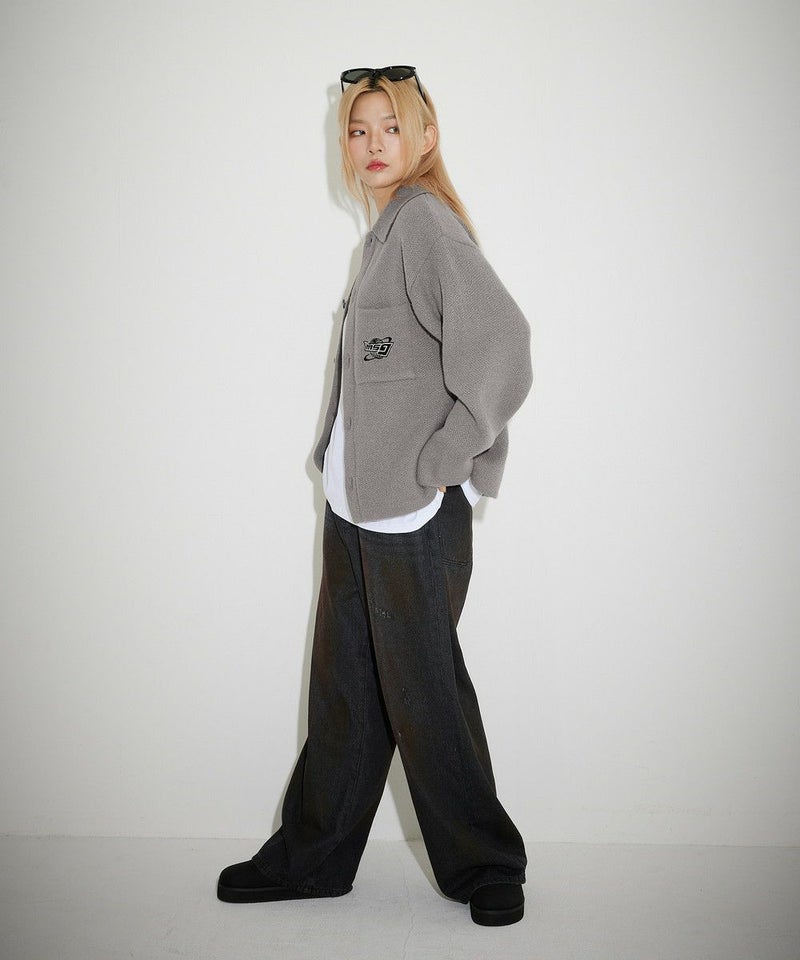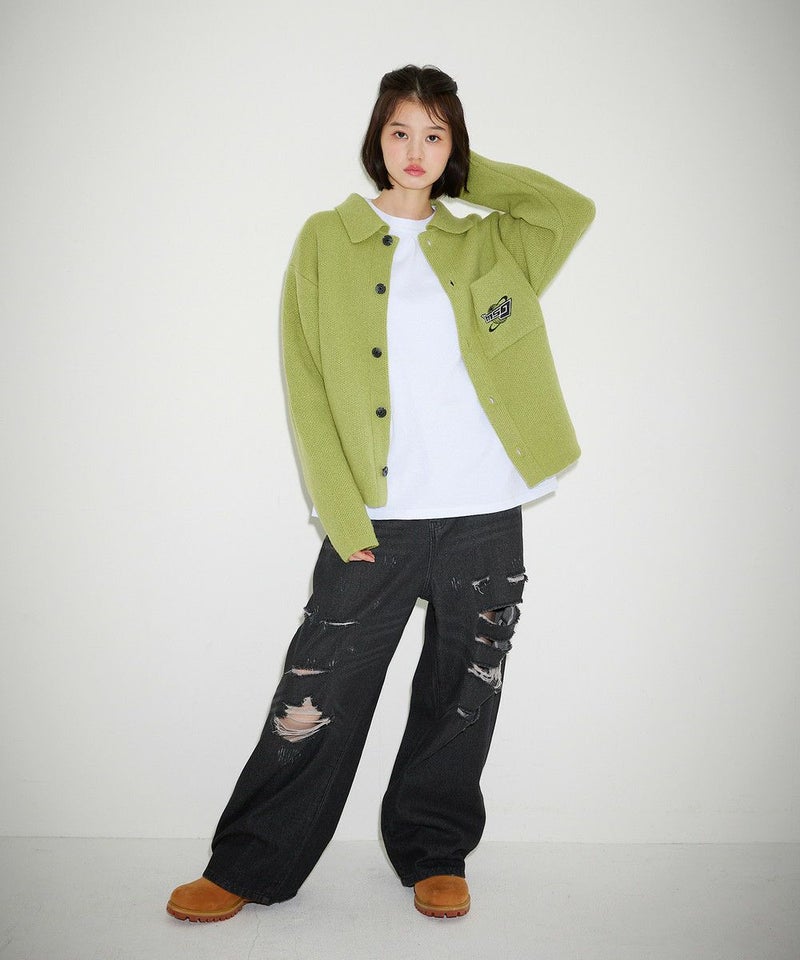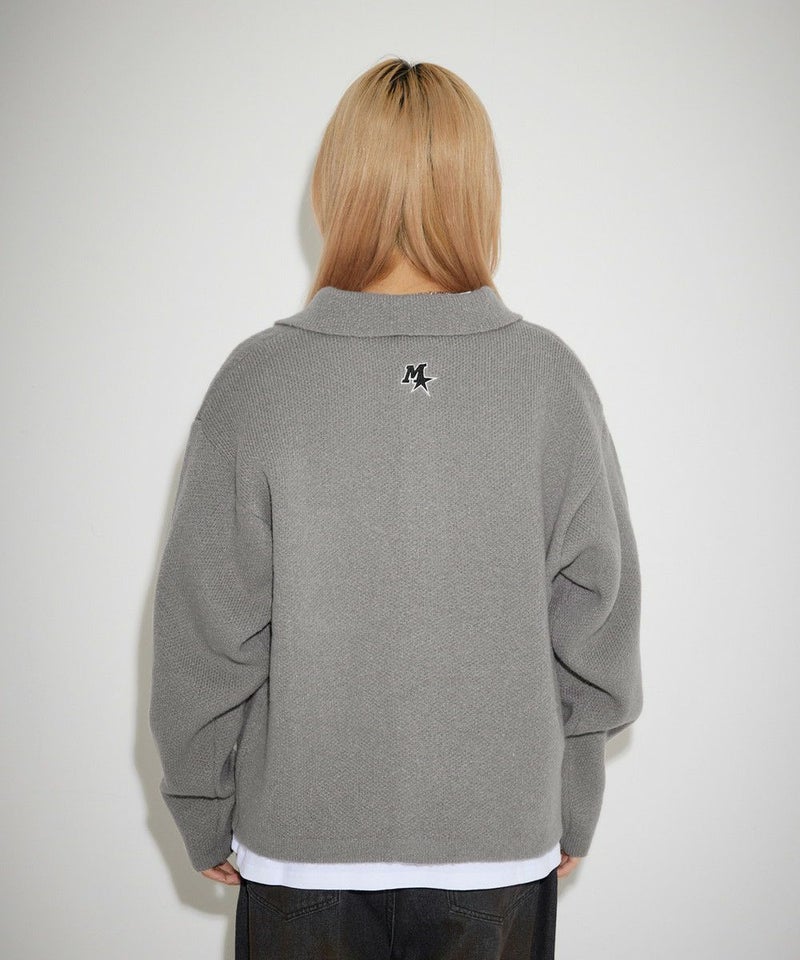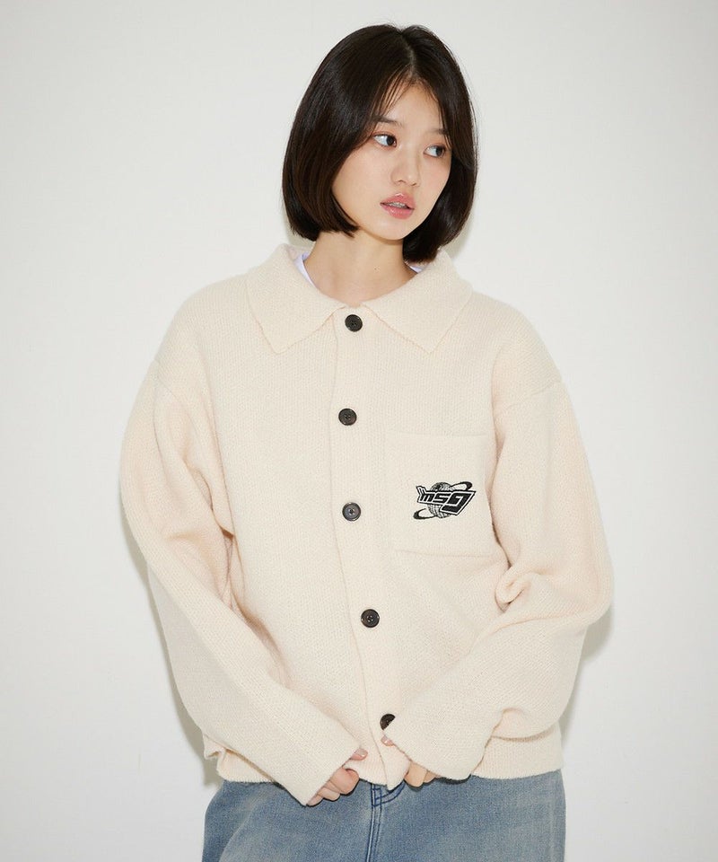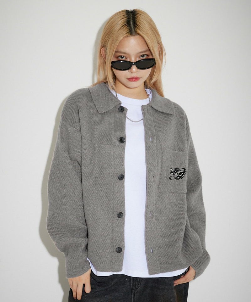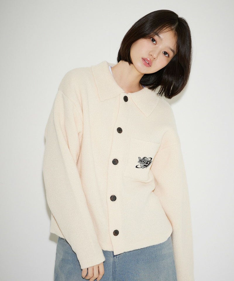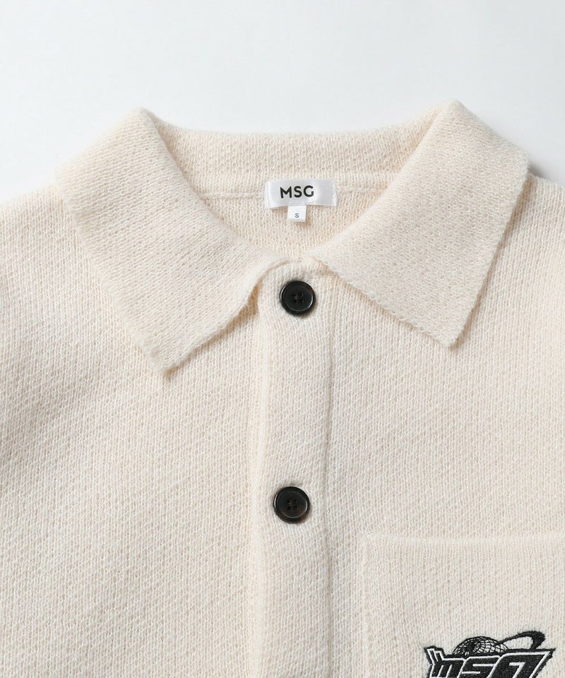 レトロな雰囲気のポロ襟デザインに、ブランド刺繍がアクセントのニットジャケット。一枚着でも、ボタンを外してジャケットスタイルでも着こなせる汎用性の高いデザインです。襟付きのポロデザインで、胸ポケットと後身頃に施されたブランドロゴ刺繍がポイント。ゆるっとルーズなサイジングで抜け感のあるシルエットも今っぽい一着です。レディース、メンズ問わずお使い頂けるユニセックスアイテムです。