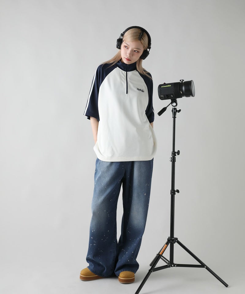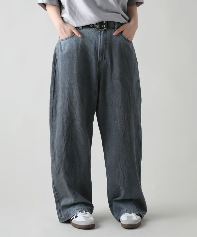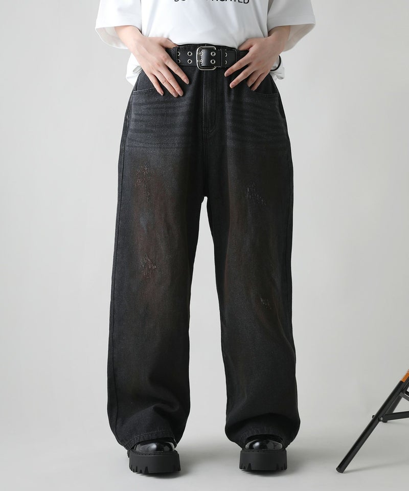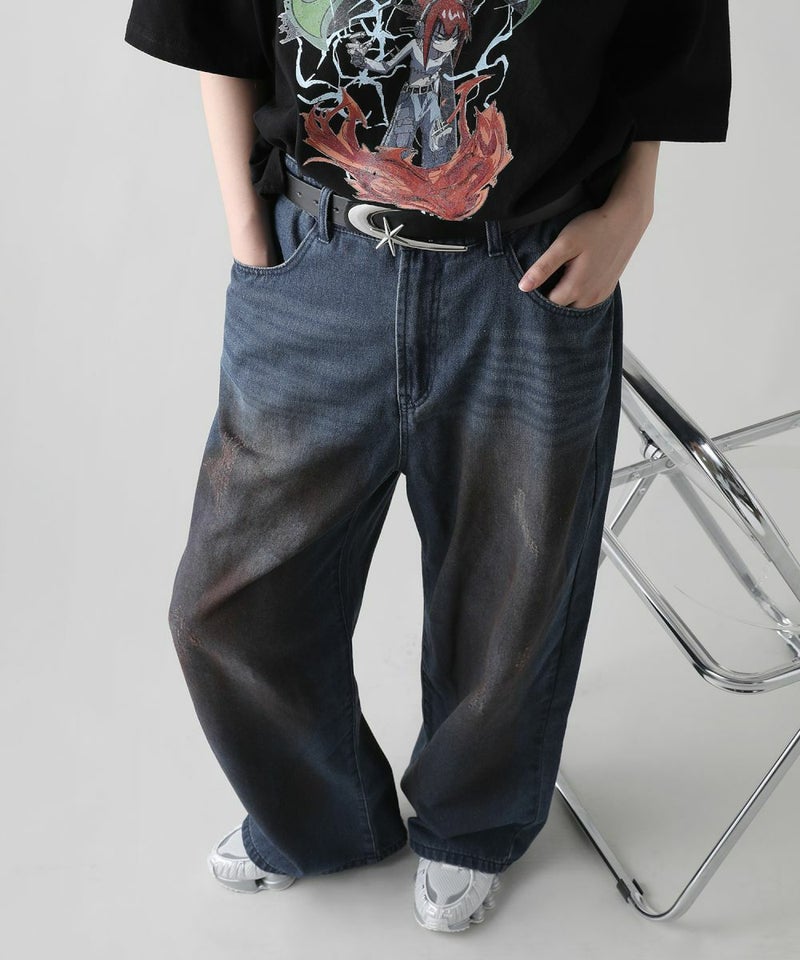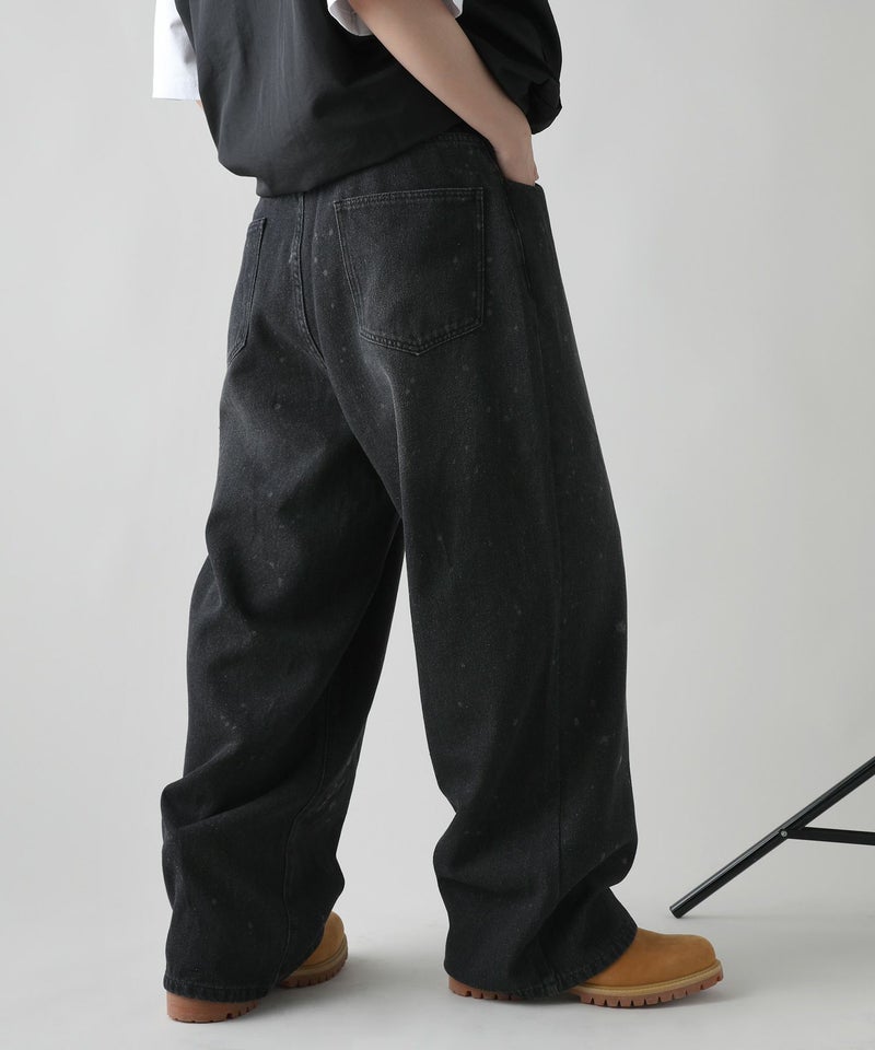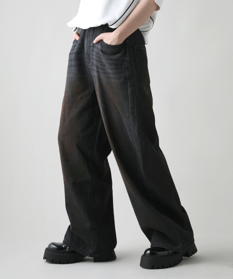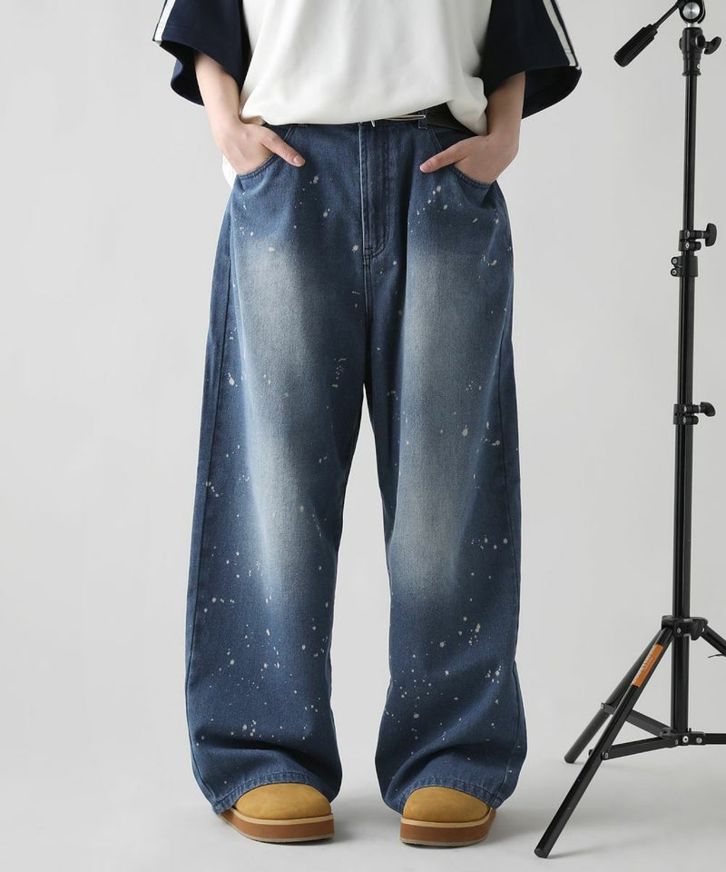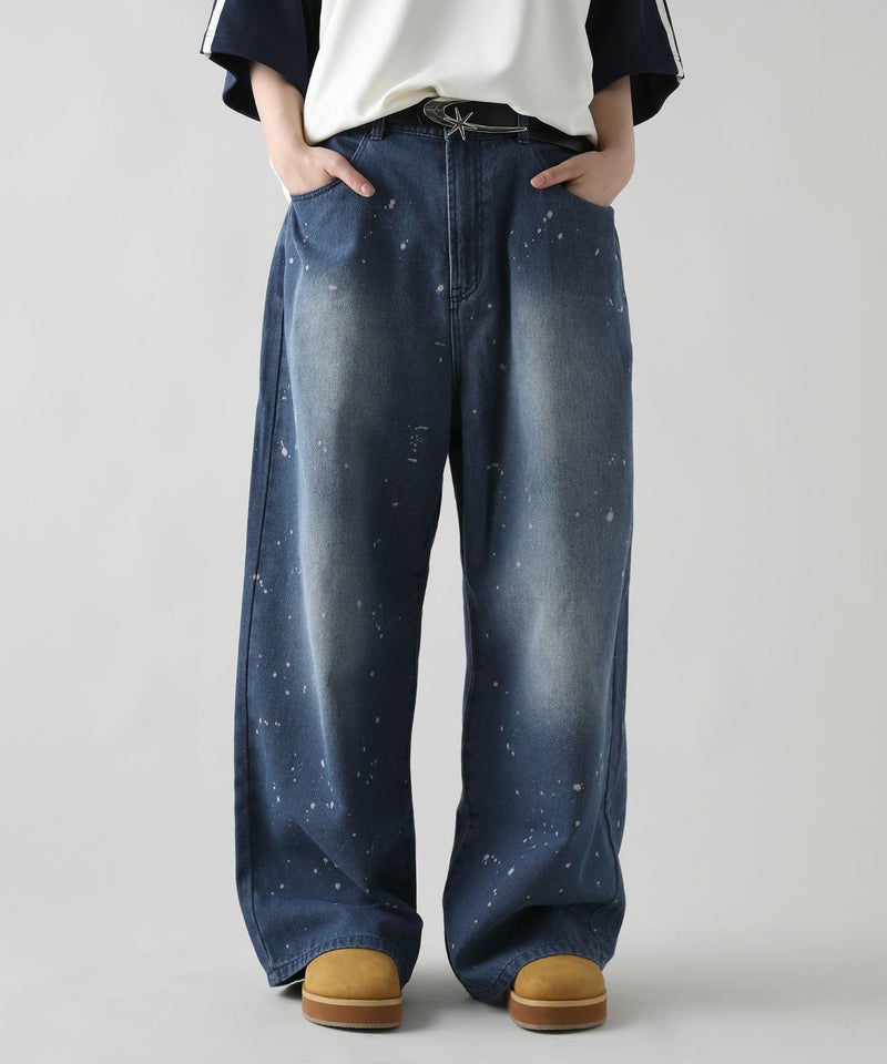 マルチ加工グランジバギーデニムパンツ ペイント加工/ペンキ加工