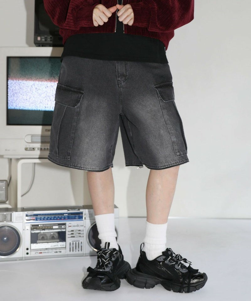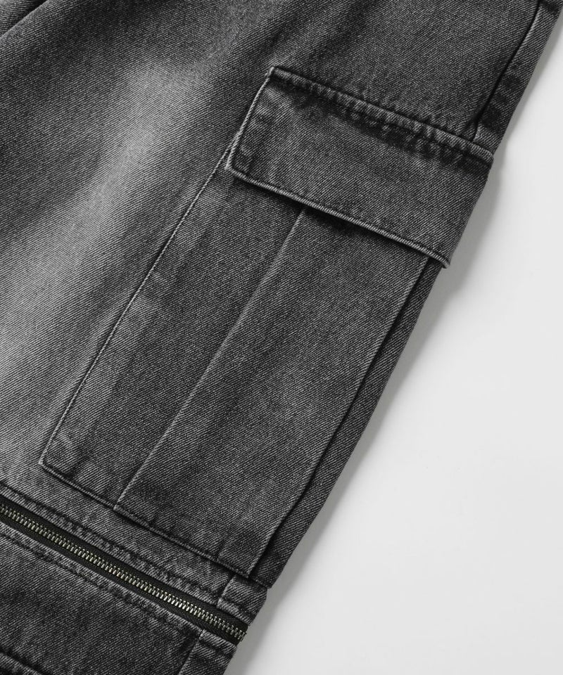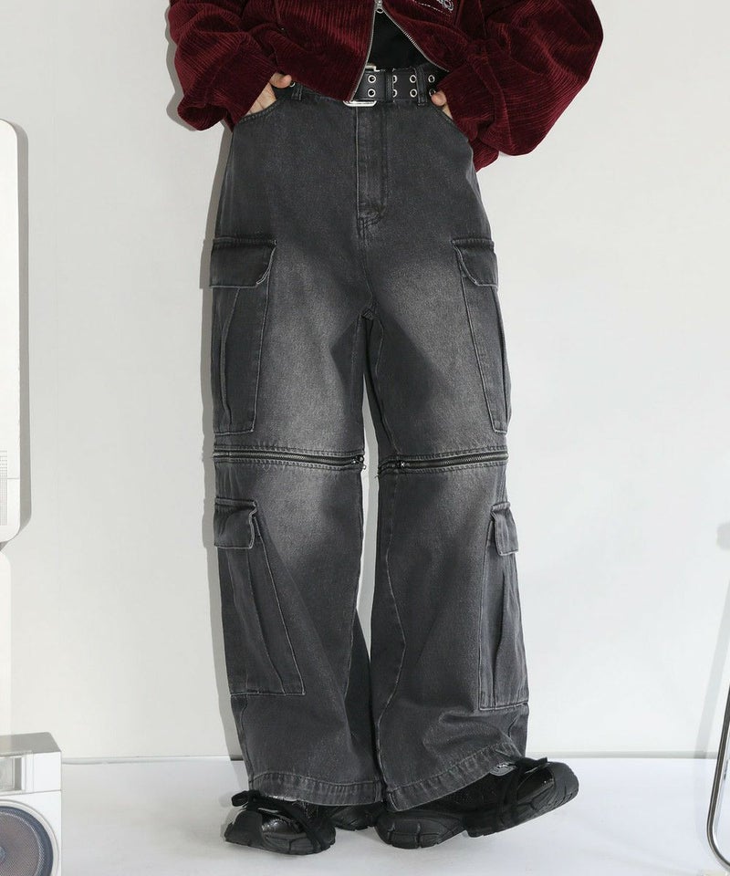12oz オーバーサイズワイドストレート 2wayZIPカーゴデニムパンツ